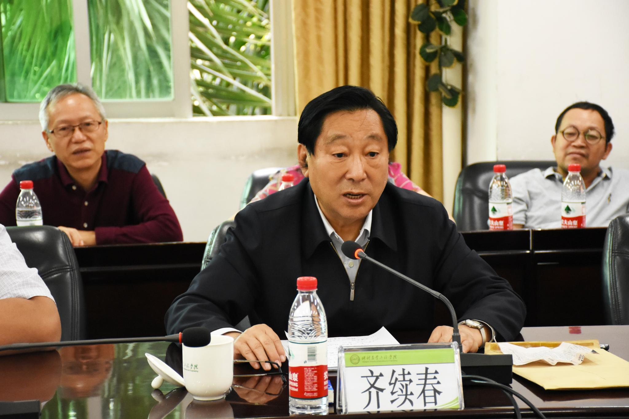 座谈会上,齐续春副主席充分肯定了学校近年来各项事业发展所取得的成绩,畅谈了对于教育与产业化结合、推进康养产业发展的见解和思考。他指出,要深刻领会把握习近平总书记提出的“优先发展教育”和“坚持中国特色社会主义教育发展道路,培养德智体美劳全面发展的社会主义建设者和接班人”的丰富内涵和精神实质,以习近平总书记系列重要讲话精神和党的十九大精神为指引,进一步解放思想、转变观念,坚持国际视野、大局观念和中国特色,大力研究挖掘学校自身优势,使教育与产业化、教育理论与实践有机结合。他勉励学校要抢抓机遇、树立信心,切实推进内涵式发展,着力提升人才培养质量,打造一支爱国爱党、敬业谦虚、务实肯干,把个人理想与国家社会发展需求紧密结合的“一懂两爱”人才队伍。