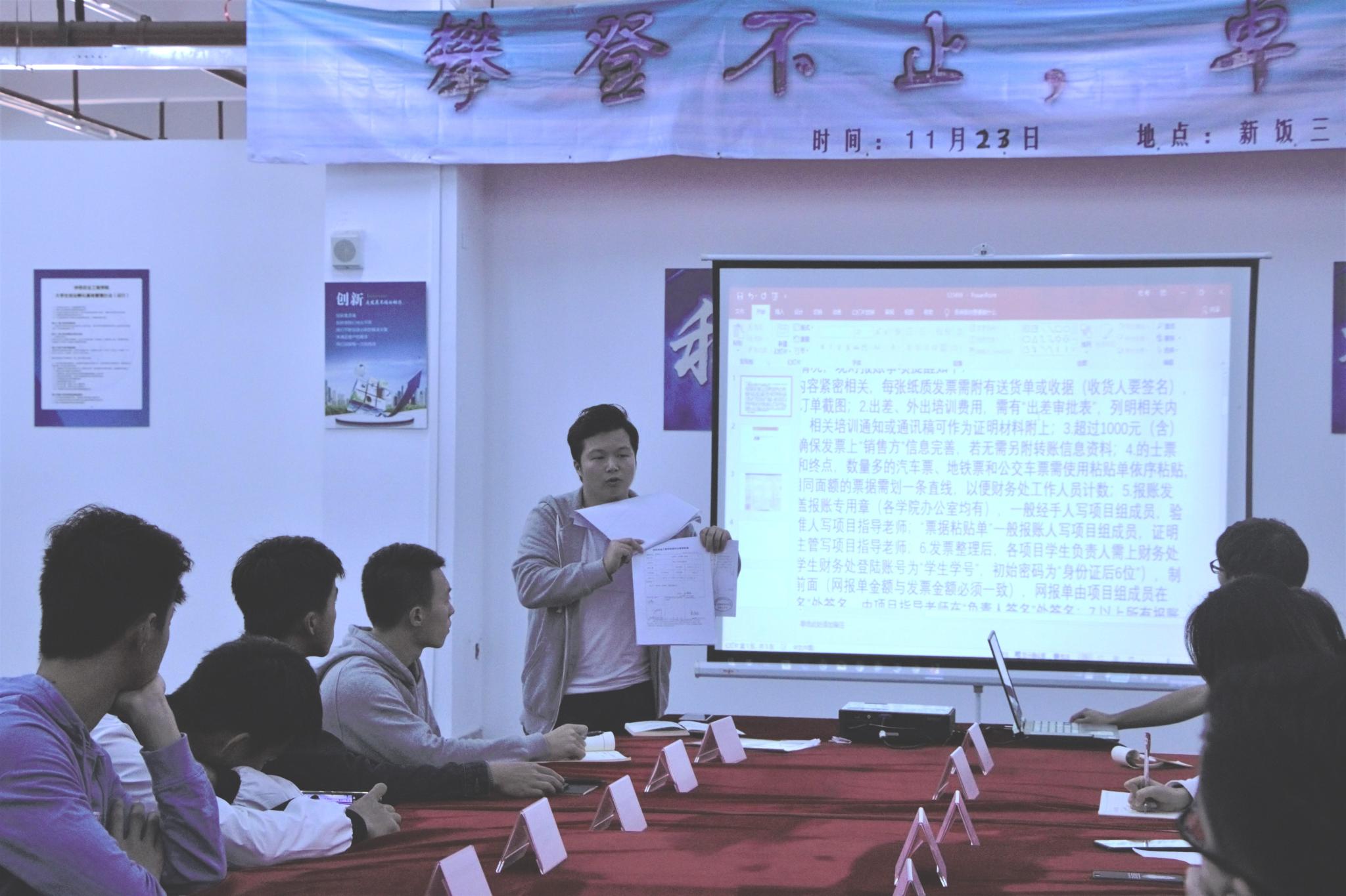 “攀登历程”分享会旨在为我校学生展示“攀登计划”项目及创新创业团队风采。本次分享会邀请到我校来自不同创新领域的十五支学生团队,其中“TU纯植物提取可吃营养口红”等三支团队为与会同学分享项目开展的经验和做法,各学院负责创新创业工作的主要学生干部与各团队互相分享经验并进行热烈交流。廖广松为团队讲解项目报账流程及2019年“攀登计划”、“挑战杯”项目申报相关事宜。最后,校团委余倩花老师进行大会总结,她讲述历年来学校“攀登计划”和“挑战杯”的成绩和困阻,提出“高度重视、认真对待;广泛动员、营造氛围;总结提升、打造精品;力争上游,再创佳绩”四点希望,希望同学们在来年的创新创业工作中再创佳绩。