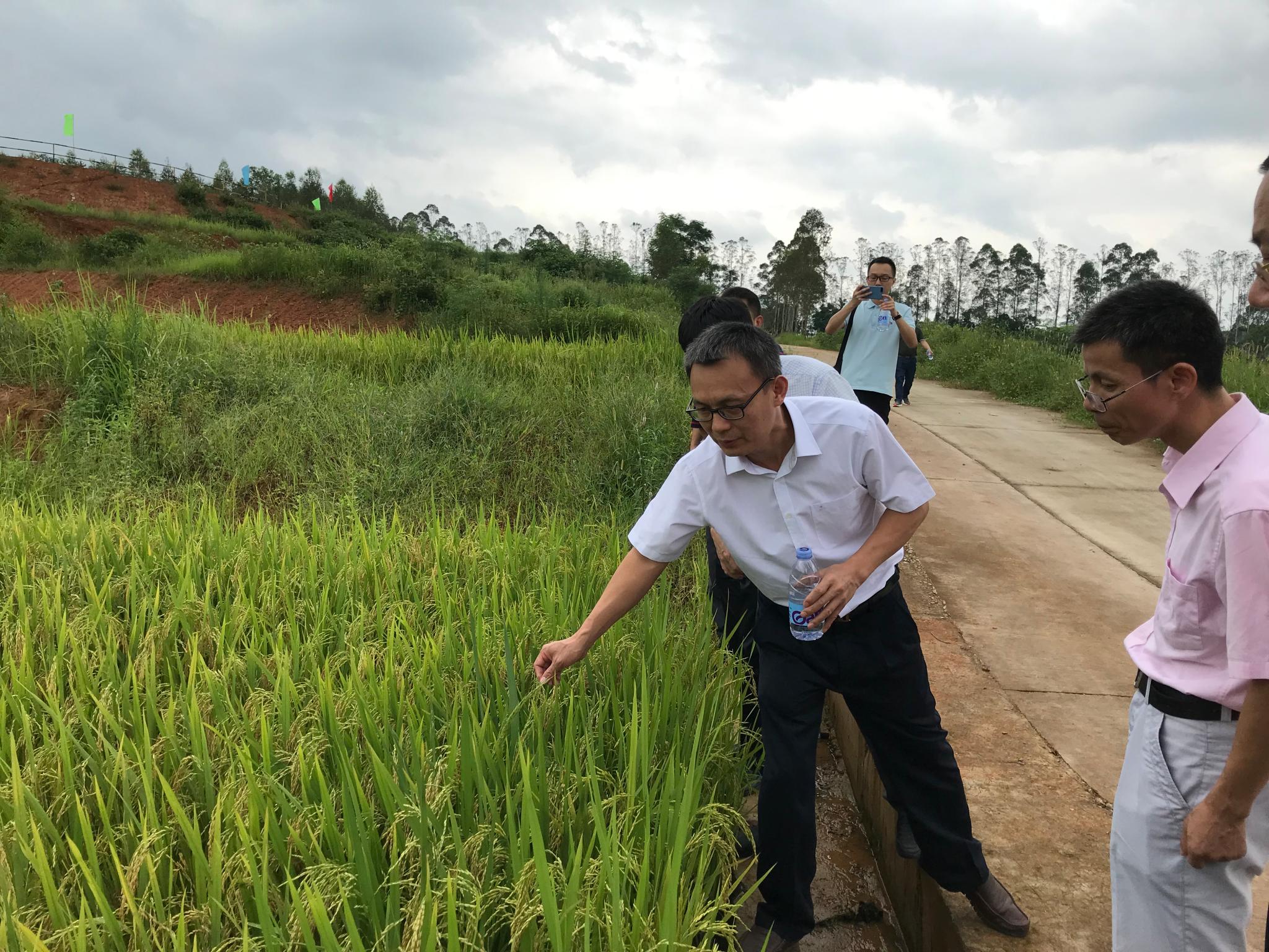 在连平县河角坪,张文峰副校长一行实地调研垦造水田项目,了解水田改造情况和水稻长势,就水田的进一步改造和水稻产业升级等方面提出建议和意见。随后,张文峰副校长一行来到广东晟禾生物科技有限公司,受到公司执行董事魏若波先生的热情接待,双方共同参加了我校产学研合作基地揭牌仪式。