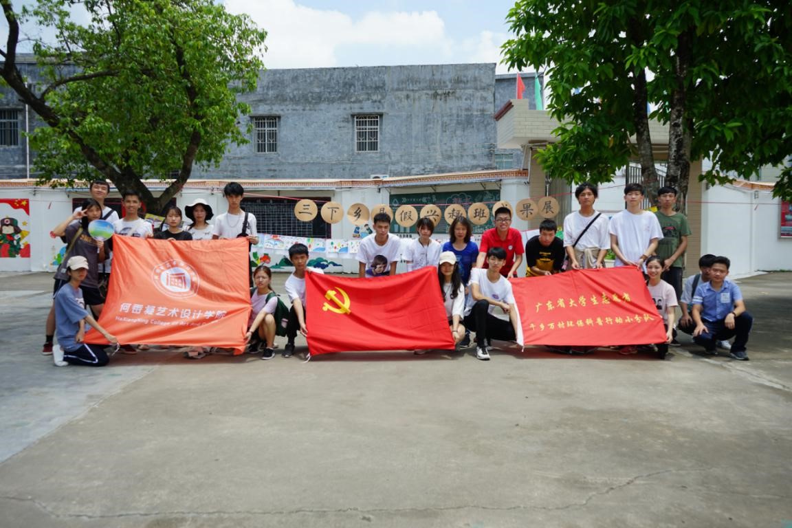 7月10日,何香凝艺术设计学院“三下乡”社会实践活动团队,来到肇庆怀集洊水村,开展2019年暑期“三下乡”社会实践活动。短短的一周里,“三下乡”团队的成员们发挥专业所长,围绕乡村文化阵地建设、教育关爱、环保科普、资助宣传等领域,扎实为当地教育扶贫工作提供服务,得到了洊水村村干部、村民和东风小学师生的高度赞扬。