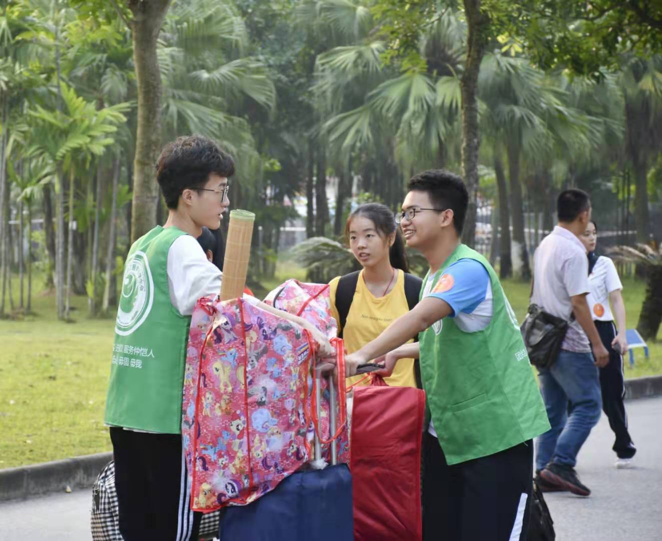 学校高度重视迎新工作。为更好地服务新生和家长,各职能部门通力合作、周密安排,全力保障迎新工作得以进行得细致高效、有条不紊。在迎新现场,学生工作部(处)设立“绿色通道”,为家庭经济困难的新生宣传国家助学贷款的政策,继续沿用微校迎新管理系统,在线上完成入学报到,便于职能部门和各二级学院随时查看新生报到数据,极大地提高了新生报到效率。各二级学院党政领导班子、辅导员、班主任、学生干部热情耐心地为新生答疑解惑,派出多支志愿者团队,在校内各处指引新生、协助报到、搬运行李,协助新生和家长完成报到工作。保卫处对校园内车辆停放和行车道规划进行了合理安排,以保证校园交通秩序,安排广州市公安局海珠分局向新生派发防诈骗宣传资料,以此提高新生的防诈骗意识。校医院增加了值班的医务人员和药物供应,医疗服务和保障工作准备充分。为方便新生就餐,今年我校部分食堂专门安装了腾讯微信消费机,初来乍到的新生们仅需线上领卡和激活,即可使用微信校园码完成用餐支付,省去了购买饭票和充饭卡的麻烦,极大方便新生就餐。校团委、各二级学院安排志愿者了负责迎新接站工作,志愿者身着统一服装,手持学校标牌,在火车站各出口和公交站口分批驻点引导新生,方便新生安全快速抵达学校。