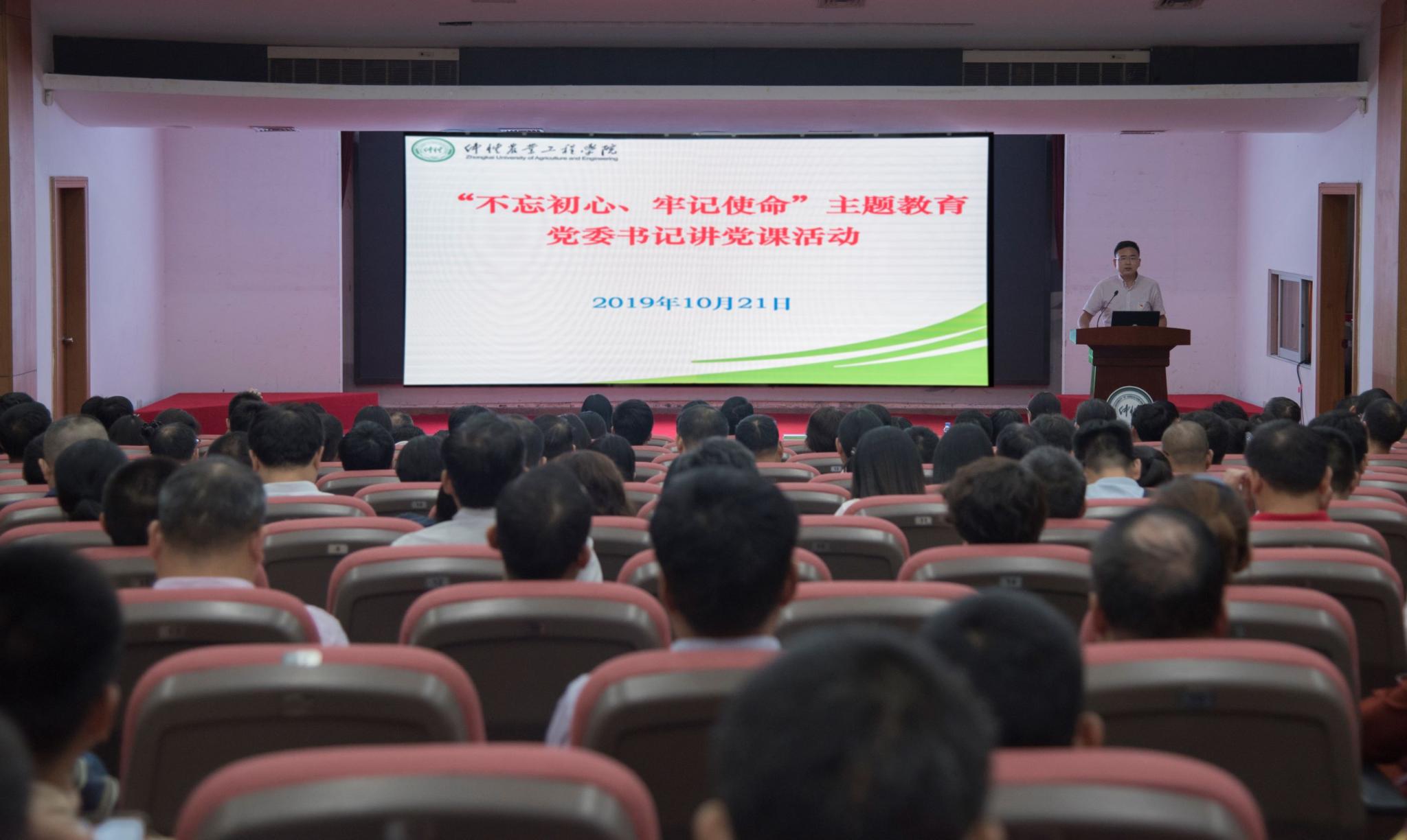 为推进“不忘初心、牢记使命”主题教育活动向纵深发展,引导广大党员干部进一步丰富学习内容,提高思想认识,坚定理想信念,10月21日下午,学校开展“不忘初心 牢记使命”主题教育专题党课学习活动。党委书记宋垚臻以《不忘初心牢记使命为建设特色鲜明的高水平应用型大学践行担当》为题,在海珠校区学术报告厅为我校党员干部讲授专题党课。省委主题教育第十巡回指导组副组长林阳同志、组员谭军同志到会指导。党委副书记、纪委书记李海燕,副校长张文峰、校级领导何斌,全体中层干部、各党支部书记共300余人参加。学习活动由李海燕主持。