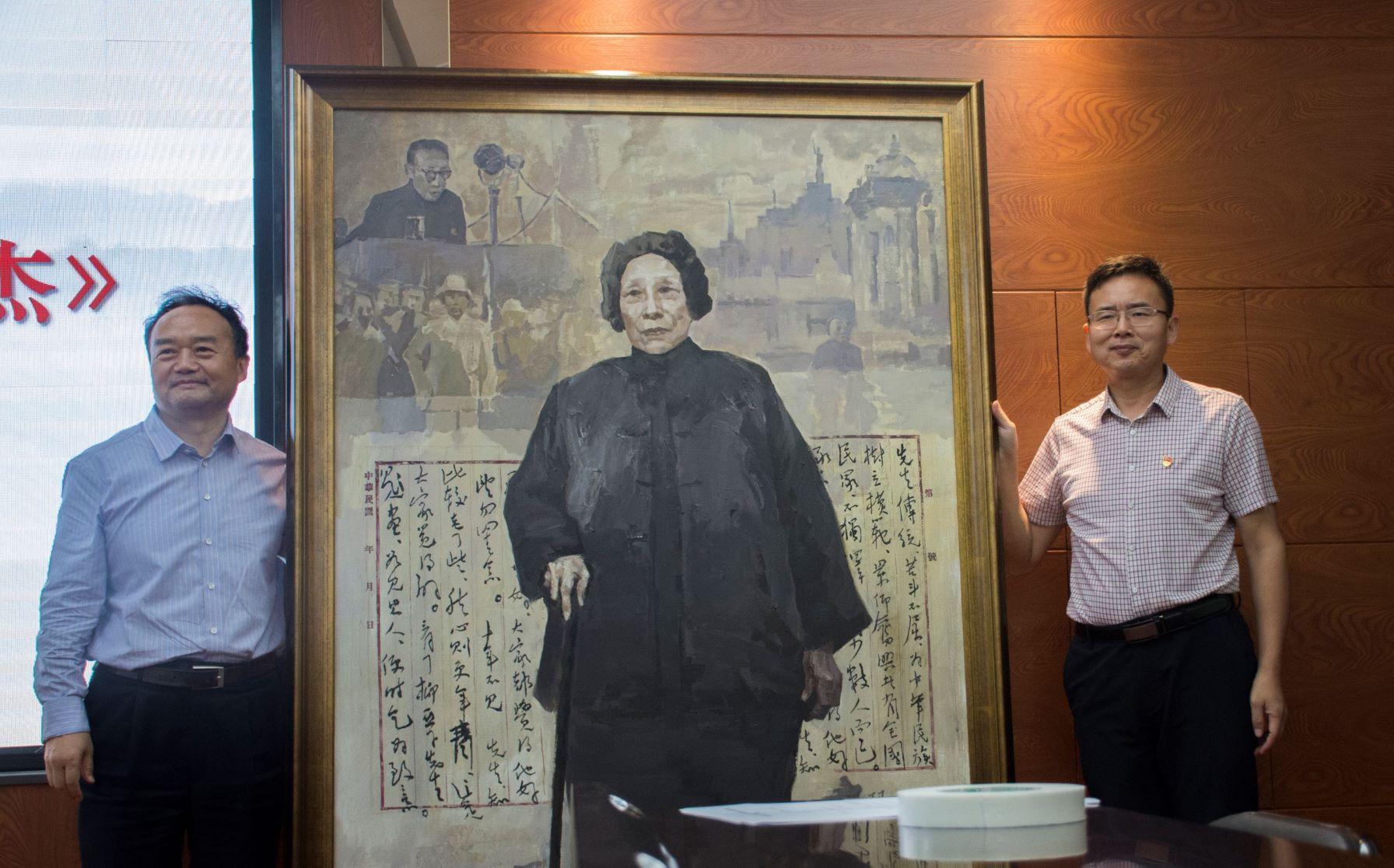 宋垚臻书记代表学校欢迎韩宝生主委一行来校指导,感谢韩主委将这幅具有重要纪念价值的油画赠送给纪念馆,促进学校和纪念馆文化事业的发展。宋书记表示,听了韩主委对创作理念和整体构思的深入讲解后,感受到韩主委对何香凝先生充满的崇敬之情,对画作的内涵有了更加深刻的认识,也重温了何香凝先生崇高品格和革命勋业,很受教育,也很感动。