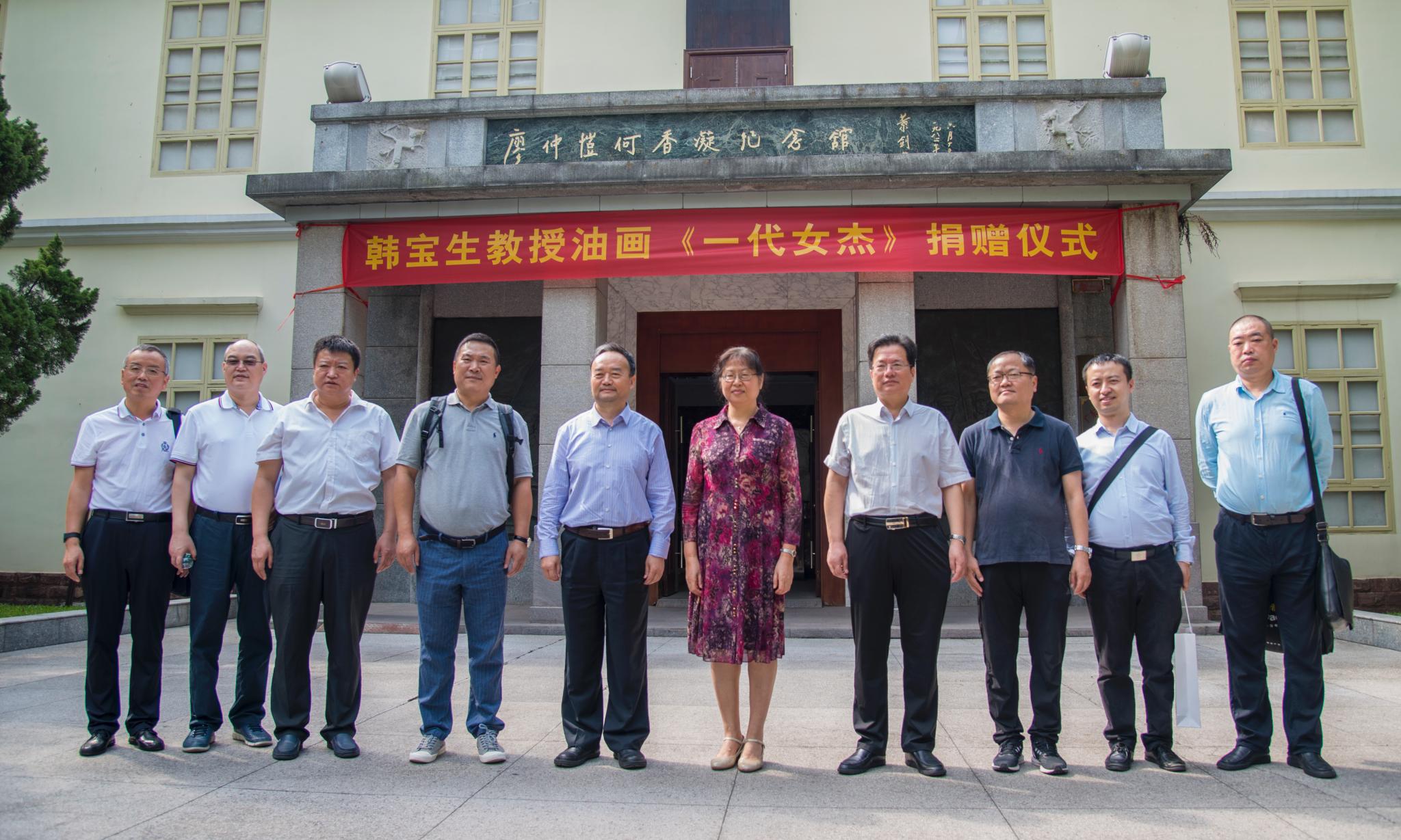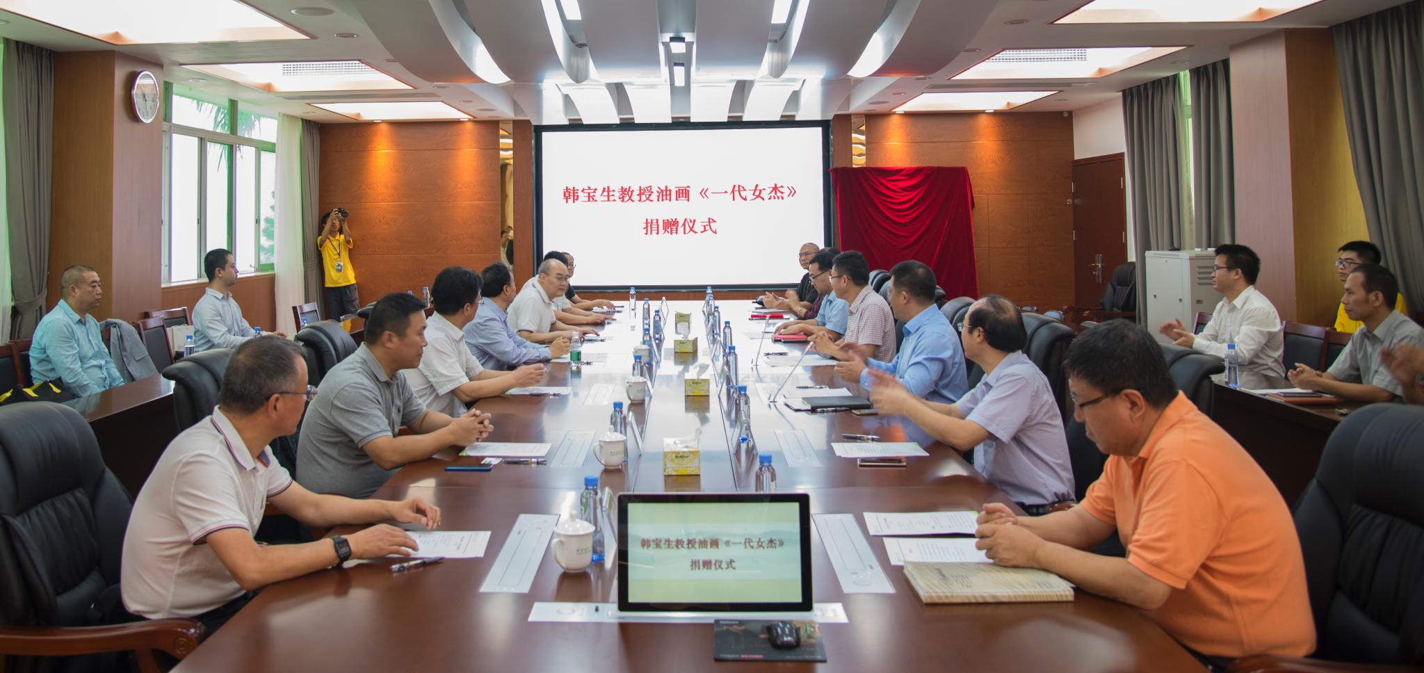 10月25日上午,民革西安市委会主委、西安美术学院教授韩宝生向廖仲恺何香凝纪念馆捐赠油画《一代女杰》的仪式在海珠校区409会议室举行。学校党委宋垚臻书记出席捐赠仪式,邱亚洪副书记主持。宋垚臻书记和韩宝生教授共同为巨幅油画《一代女杰》揭幕,廖仲恺何香凝纪念馆馆长蔡瑞燕向韩宝生教授颁发捐赠证书。