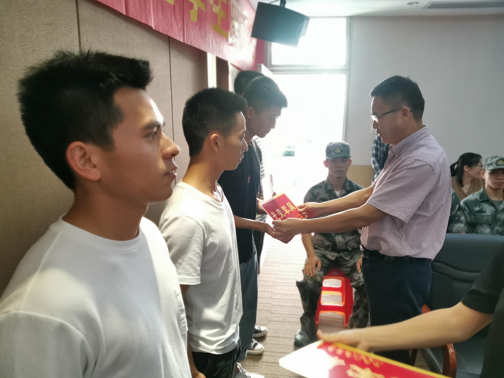 宋垚臻代表学校为退伍复学学生颁发了光荣军属证和优秀士兵奖金。