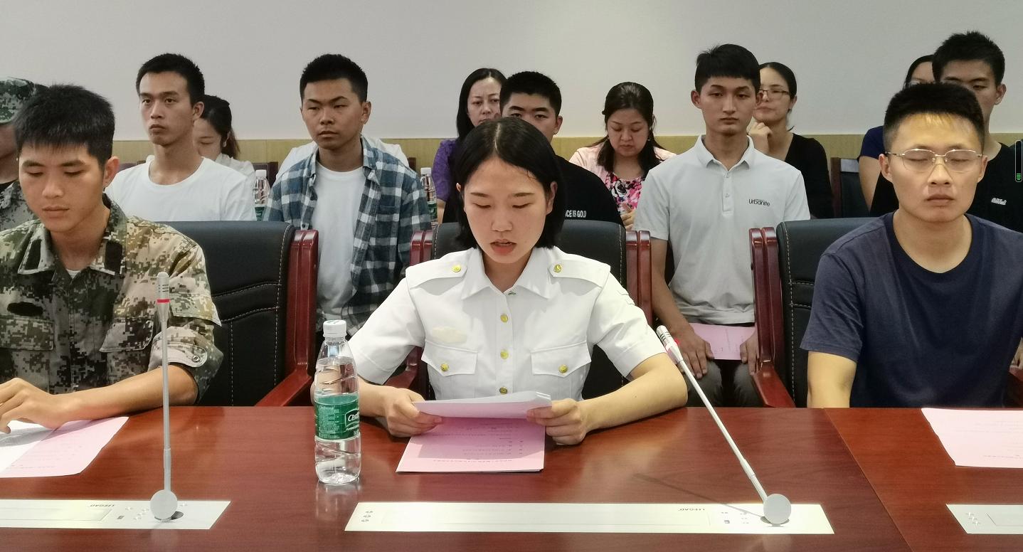 退伍学生代表环境科学与工程学院朱奕莹、经贸学院钟海兰、计算科学学院郭荣杰、农业与生物学业陈逢浩分别发言。