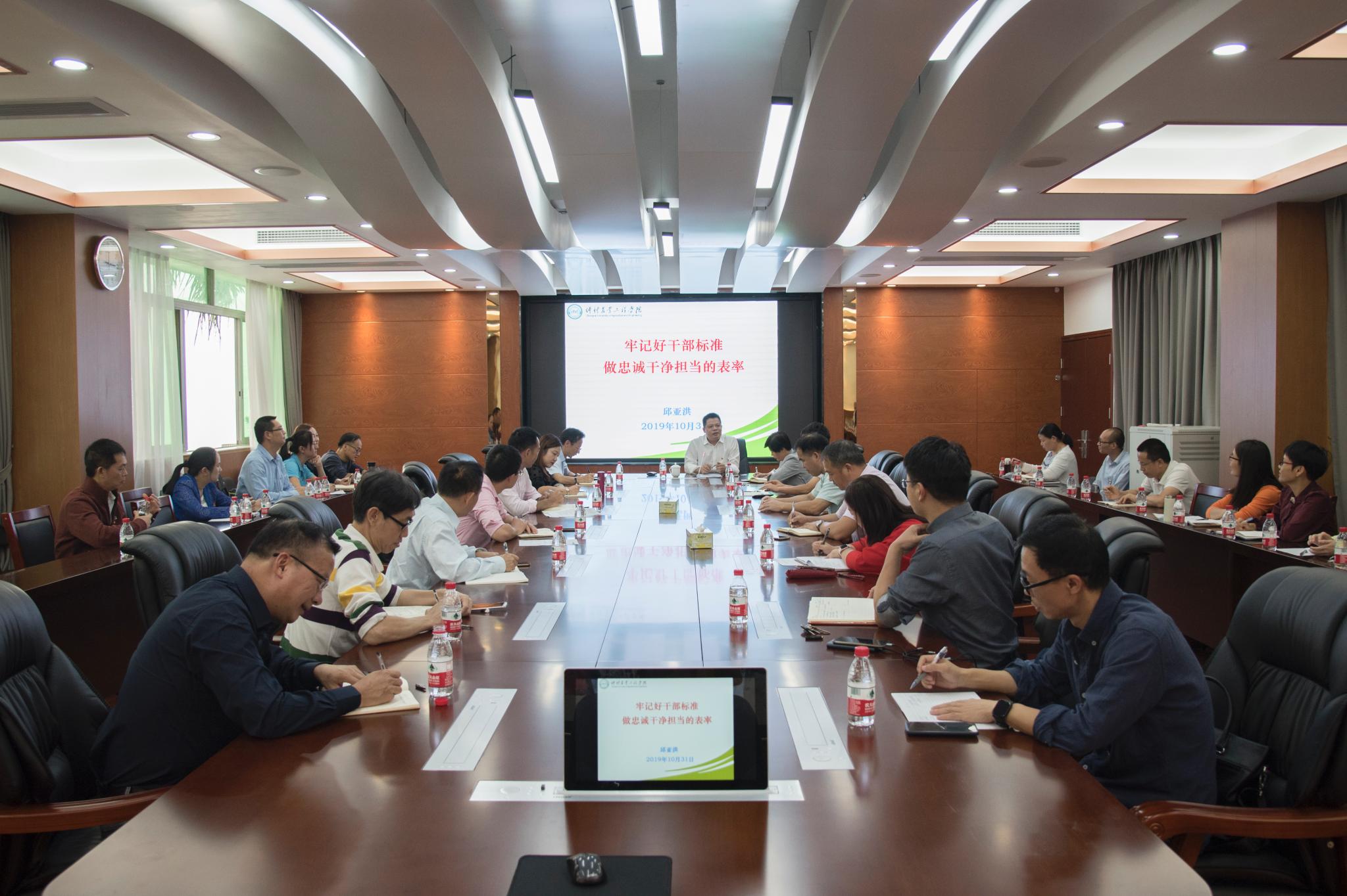 根据学校“不忘初心、牢记使命”主题教育工作安排,10月31日下午,学校党委副书记邱亚洪在409会议室以《牢记好干部标准,做忠诚干净担当的表率》为题讲授主题教育专题党课。参加党课的人员分别为邱书记分管部门的负责人以及二级学院党总支副书记。