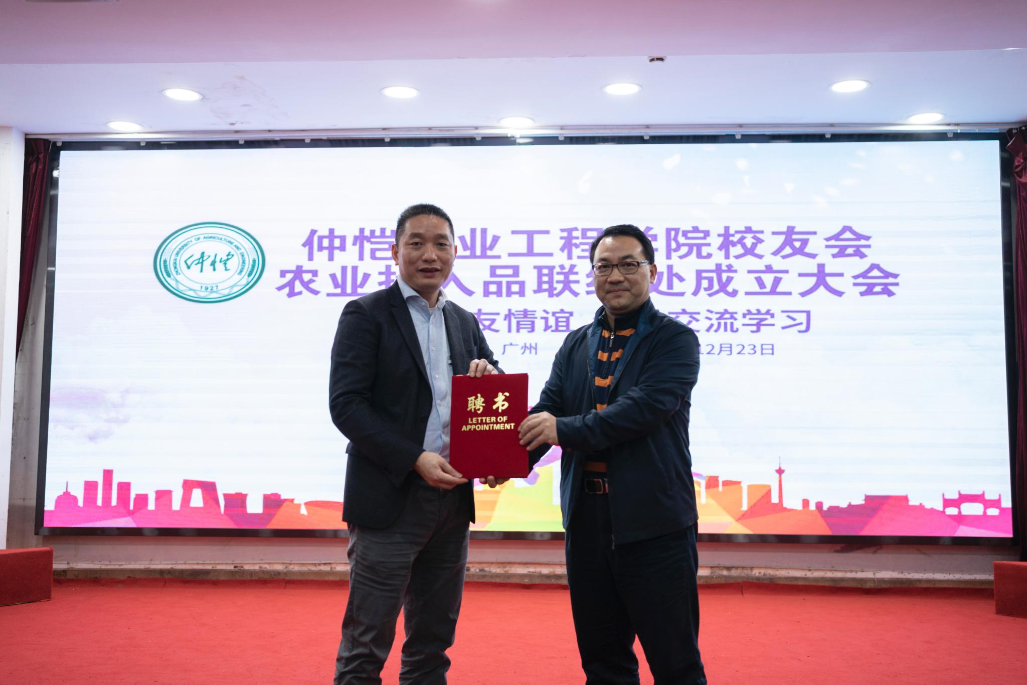 会上,学校校友会理事会秘书长何军峰宣读《关于同意成立仲恺农业工程学院校友会农业投入品联络处的批复》。会议选举产生了校友会农业投入品联络处第一届组织机构成员,吴浪明任首届联络处主任,陈小冠任执行主任,叶银祥、徐志刚、冯伟文、曾永青、莫木辉、余显茂、方佳彬任副主任。余显茂兼任秘书长,陈高峰、何月亮、张豪杰任副秘书长。