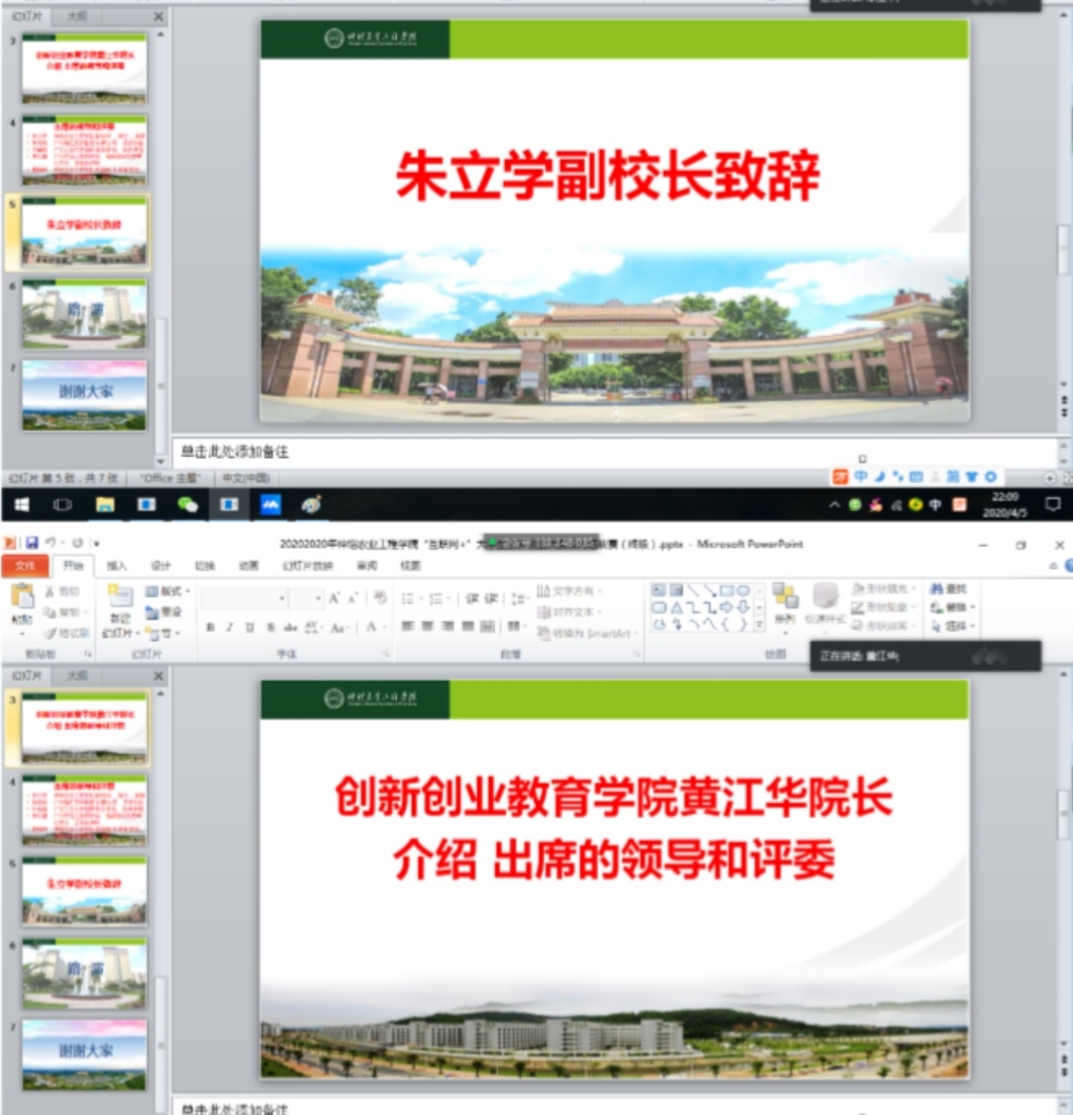 校内选拔赛路演于4月5日在腾讯会议系统(会议号:133348035)成功举行。朱立学副校长出席本次大赛并致辞。
