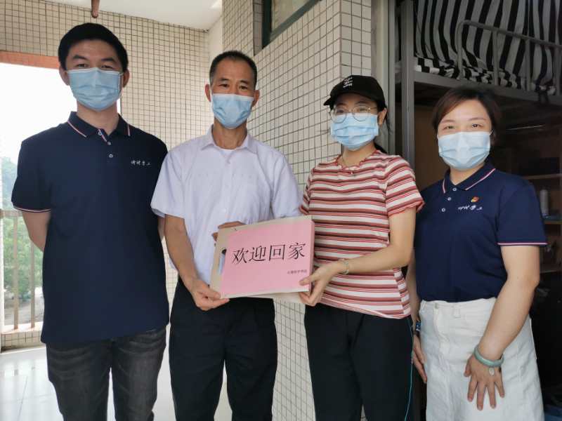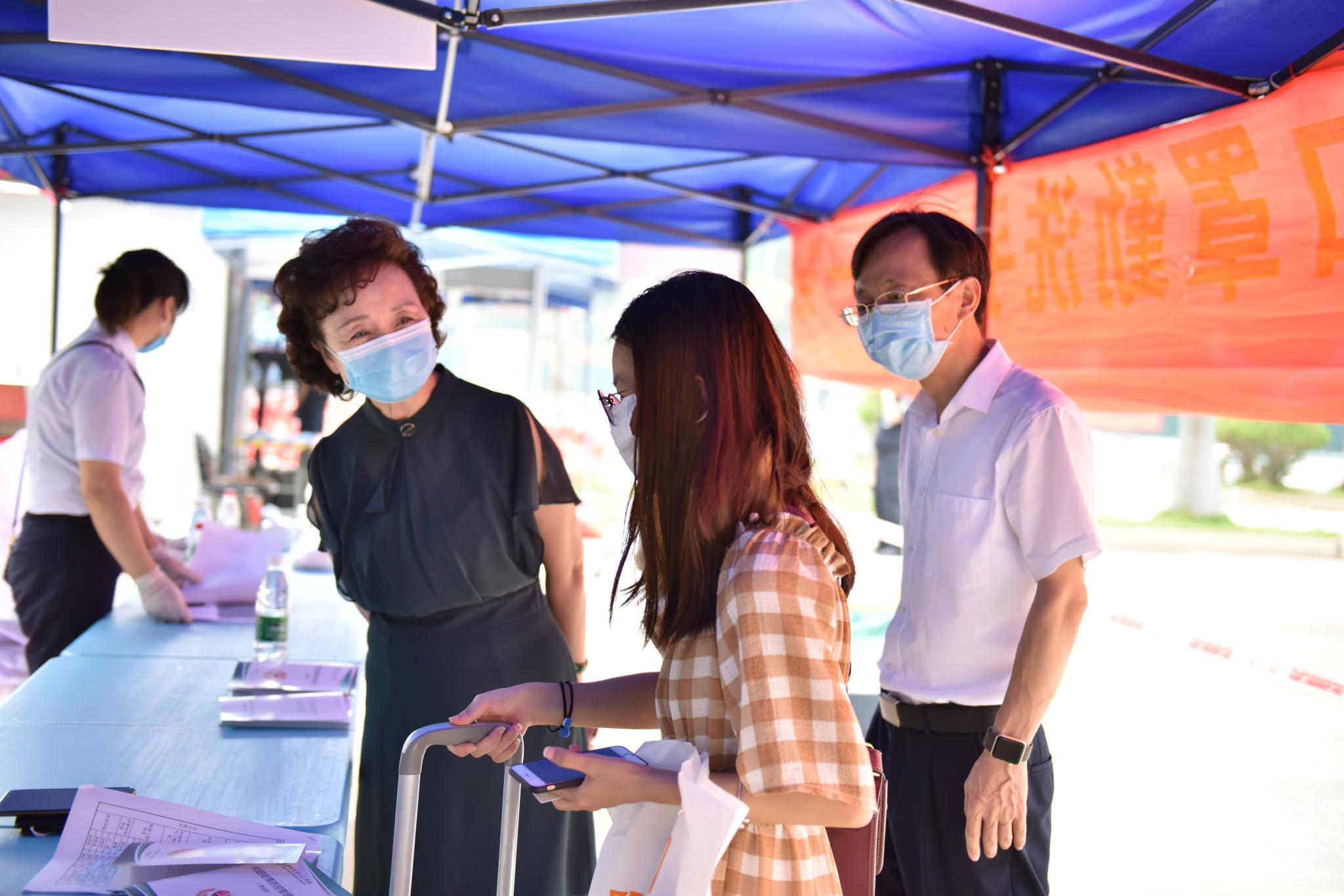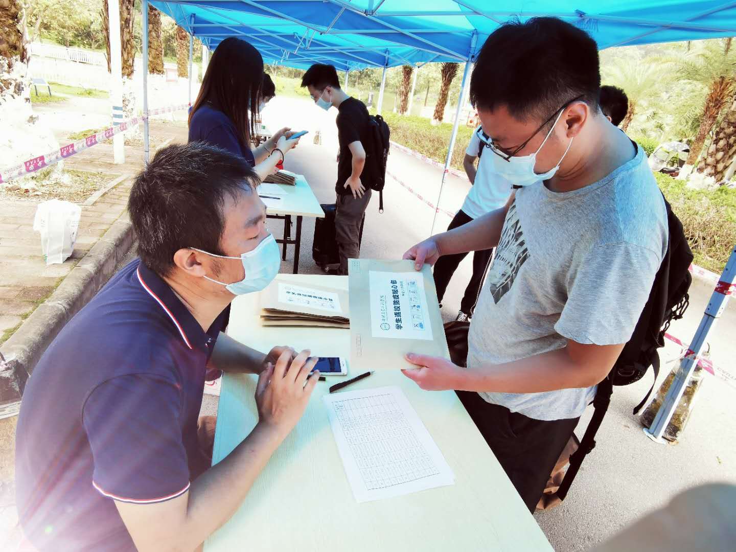 首批返校学子为部分本科毕业班同学以及需返校做实验的研究生。在报到现场,同学们在工作人员的指引下,根据学校规划好的间隔距离,有秩序地排队进入校园,有条不紊地进行扫码核验、体温检测、手部消毒、行李消毒、领取装有一次性医用防护口罩和酒精棉片的防疫暖心包以及《校园疫情防控管理须知》(学生版)和《复学心理防护自助手册》。宋垚臻书记、程萍校长分别与返校学生亲切交谈,详细询问同学们在假期里的生活和学习情况,叮嘱大家返校后要严格遵守学校各项常态化疫情防控要求,认真完成各项毕业手续。