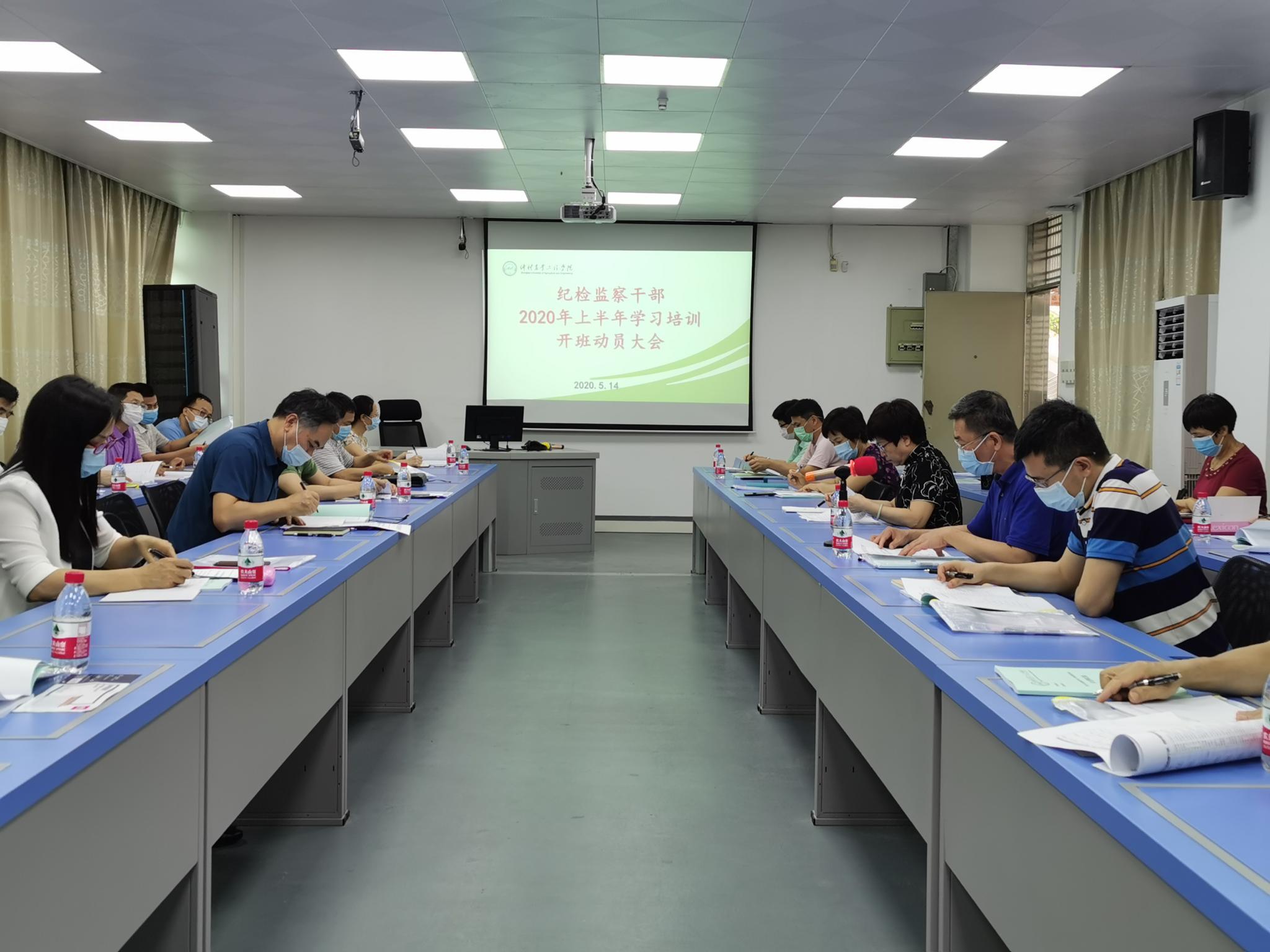 5月14日下午,学校纪委在海珠校区教学楼703室,组织召开纪检监察干部2020年上半年学习培训工作开班动员大会。学校党委副书记、纪委书记、省监委驻学校监察专员李海燕同志出席并作动员讲话,学校纪委委员、各党总支(直属党支部)纪检委员、特约监察员及纪委监察处干部参加。学校党委委员、纪委副书记、监察处处长刘兵同志主持会议。