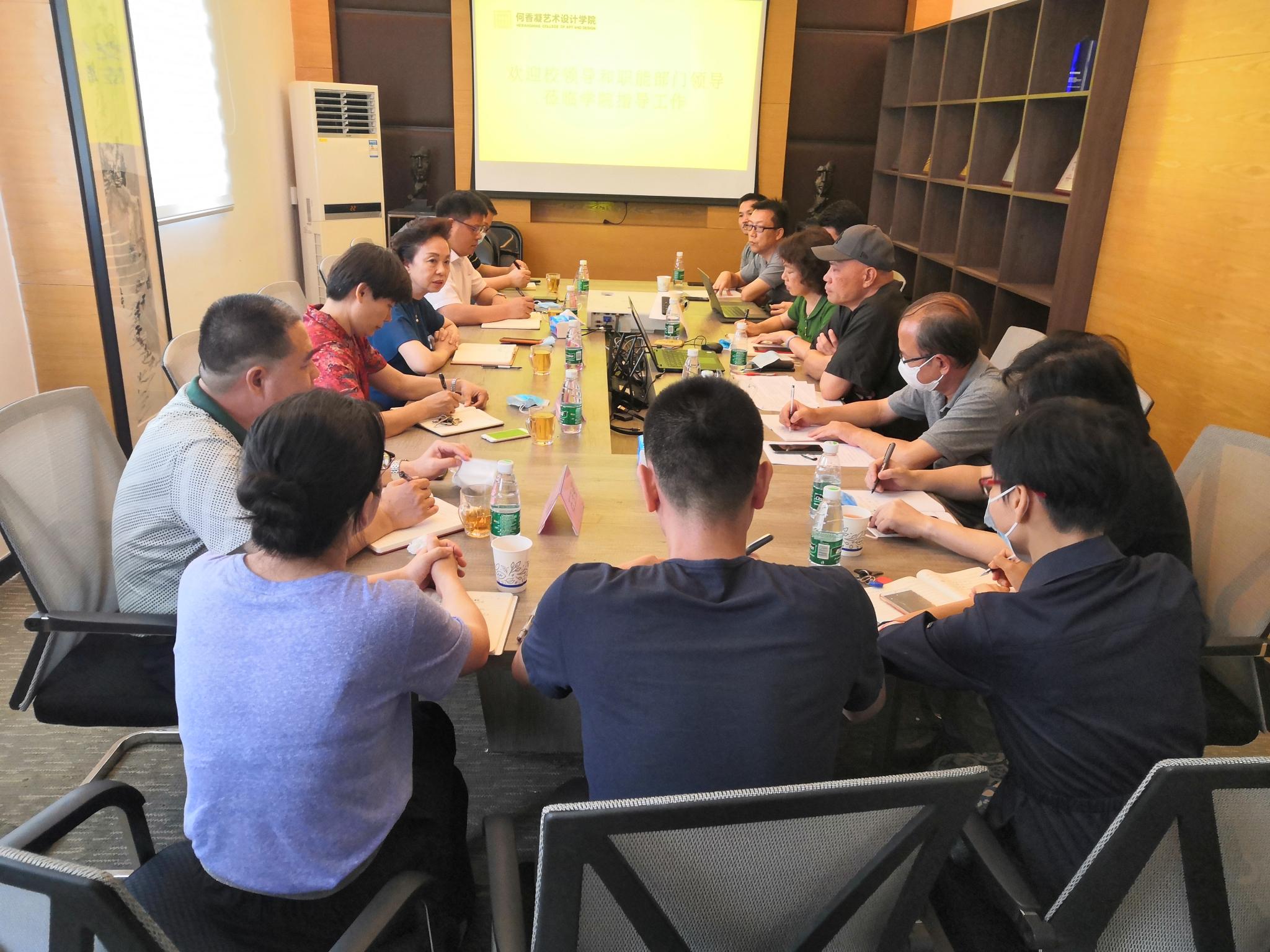 6月23日上午,校长程萍、党委副书记邱亚洪到何香凝艺术设计学院就队伍建设和本科教学等工作开展调研。党委常委、组织部部长黄碧珠,教务处处长石玉强及党政办公室副主任邱振国陪同调研。何香凝艺术设计学院全体班子成员、各系系主任及教学主任参加了调研活动。