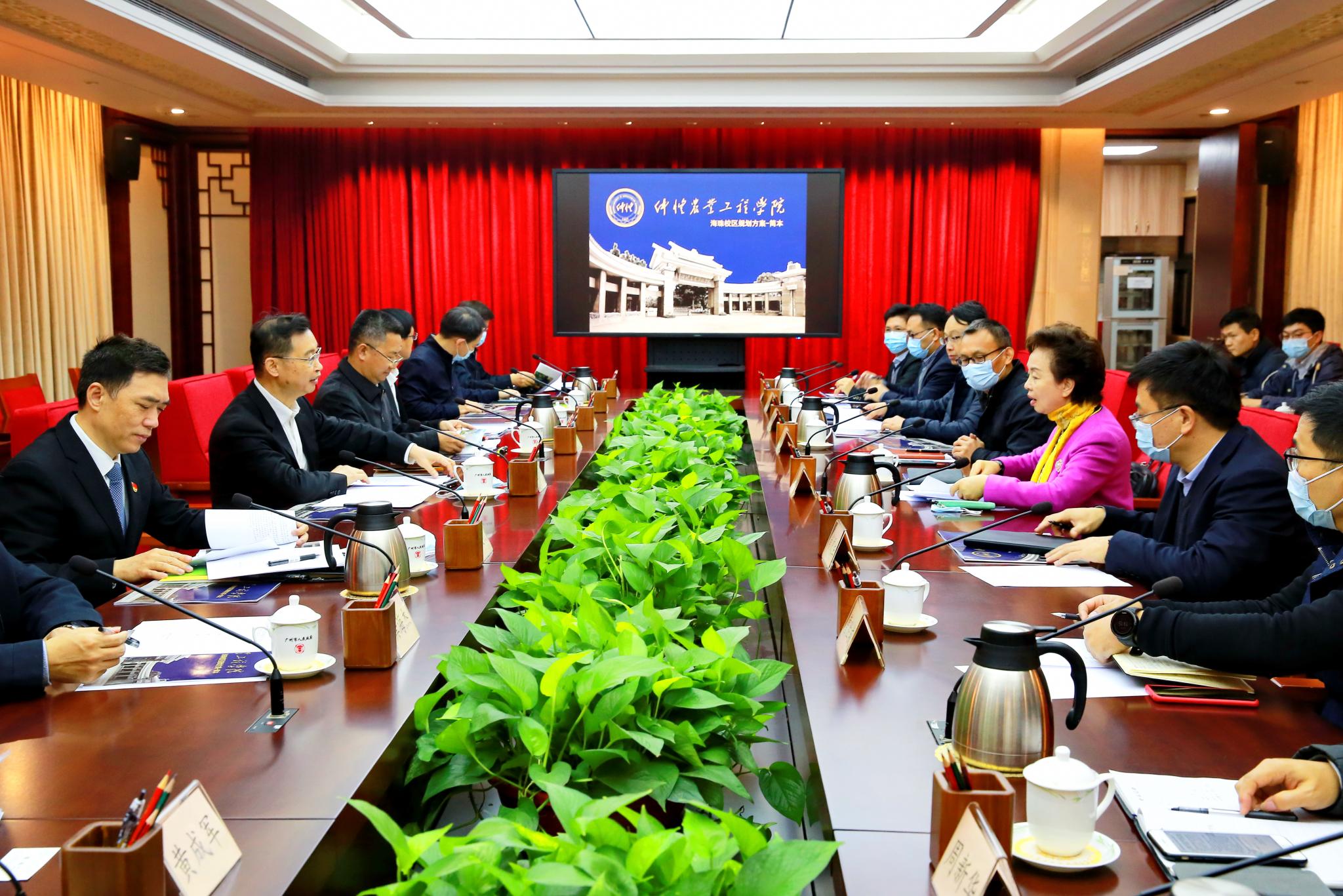 双方就学校海珠、白云校区建设,科研和平台建设,人才引进,以及校地合作进行了深入交流。
