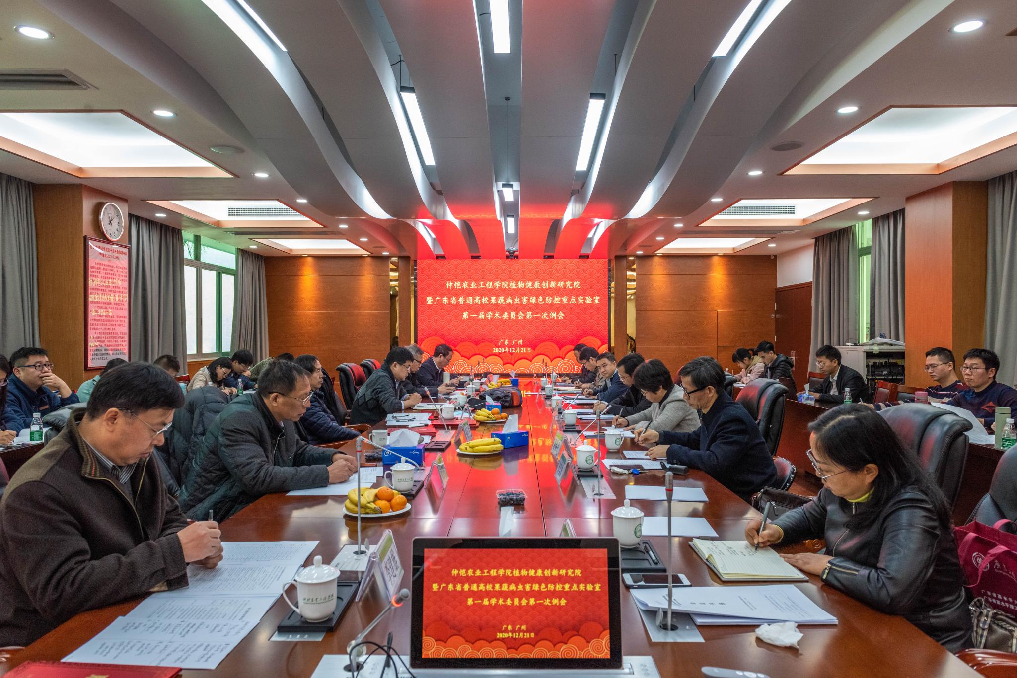 12月21日上午,我校植物健康创新研究院暨广东省普通高校果蔬病虫害绿色防控重点实验室在海珠校区教学楼409会议室召开第一届学术委员会第一次例会。中国工程院院士、西北农林科技大学长江学者特聘教授康振生,我校校长程萍,华大农业应用研究院工程师权力,华中农业大学教授喻子牛,华南农业大学教授张炼辉、徐汉虹、姜子德,广西大学研究员李健雄,中国科学院微生物研究所研究员蔡磊,我校发展规划处、科技处处长周新华,农业与生物学院院长郑奕雄,植物健康创新研究院执行院长向梅梅,执行副院长喻国辉、董章勇,广东省普通高校果蔬病虫害绿色防控重点实验室副主任韩群鑫,真菌系统学与资源发掘团队中方负责人游春平,纳米农药创新团队负责人周红军出席会议,植物健康创新研究院、广东省普通高校果蔬病虫害绿色防控重点实验室全体团队成员参加会议。会议由植物健康创新研究院执行院长向梅梅主持。
