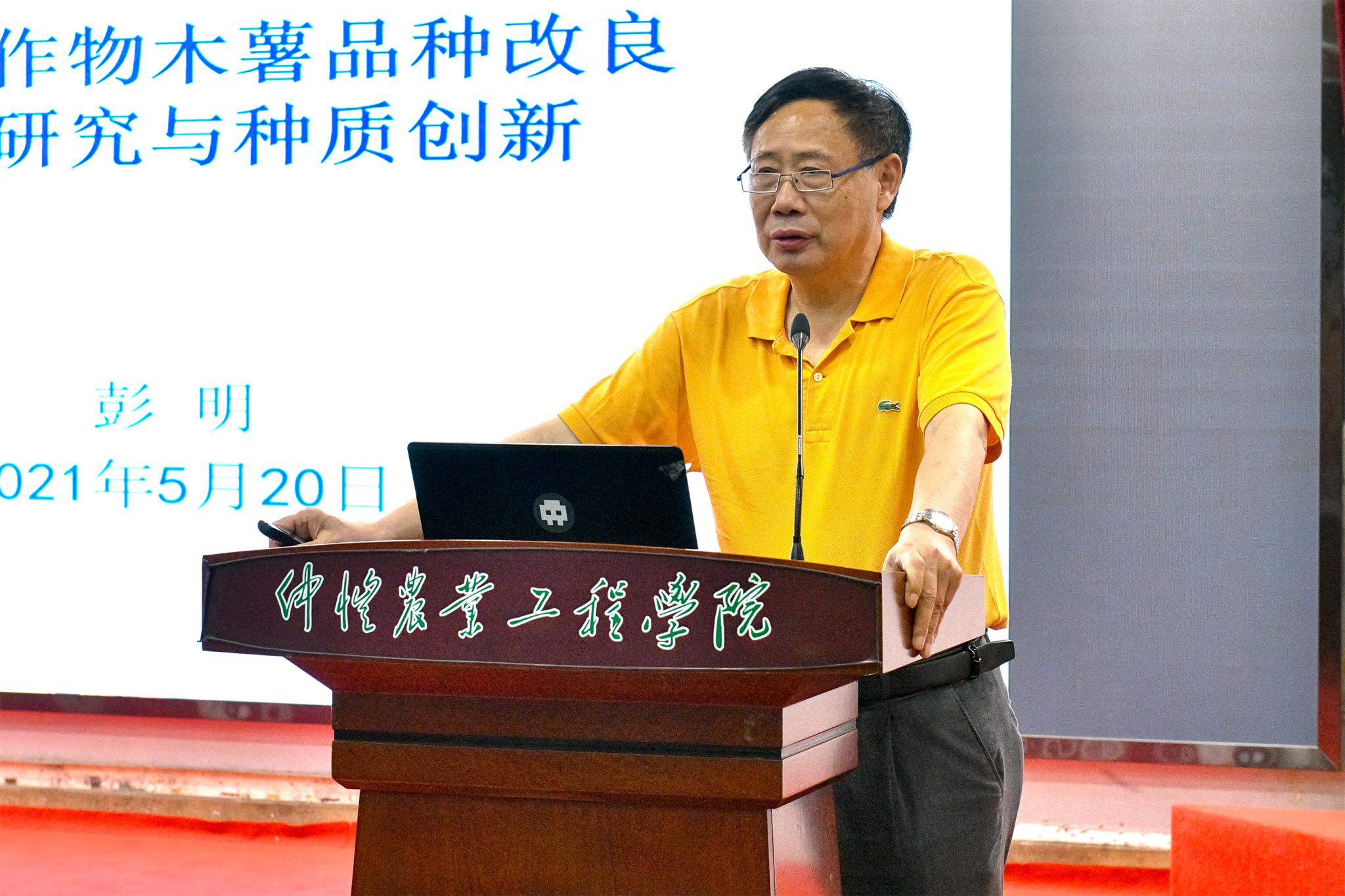 彭明教授以《重要热带作物木薯品种改良的基础研究与种质创新》为题,围绕热带重要作物木薯的基础研究和开发应用展开论述。从木薯的生物学特性与优势分析木薯的重要地位和作用,并引用自身种植和挖掘木薯价值的经历给予科研工作者经验和提供科学观点和研究视角,对我校的科研工作有很大的启发。