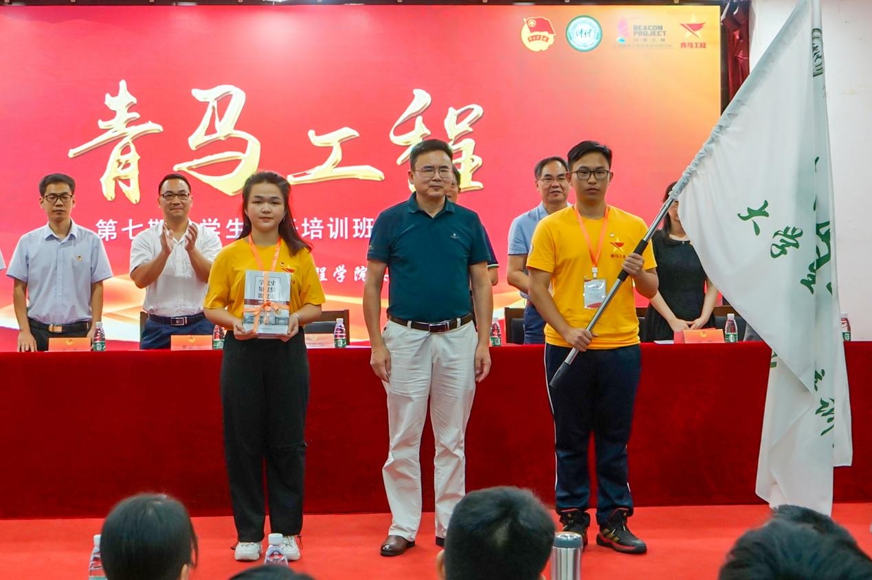 宋垚臻为青马班授旗和赠送学习书籍。宋垚臻强调,在中国共产党成立100周年之际,学校坚持“党管青年”“党管人才”原则,将“青马工程”作为全面贯彻党的教育方针、落实立德树人根本任务、推进构建“三全育人”大思政工作格局的重要工程。他就如何在学习中坚定信念向同学们提出三点希望:一是在理论学习中提高认识,做新时代马克思主义的忠诚信仰者;二是在实践锻炼中坚定信念,做新时代马克思主义的坚定践行者;三是在日常管理中发挥作用,做新时代马克思主义的积极传播者。