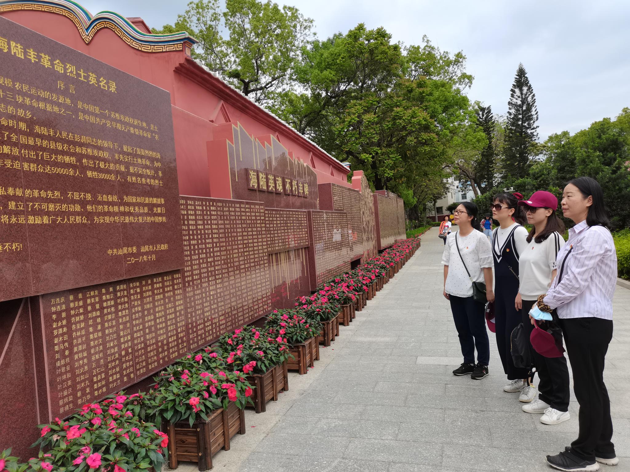 刚进入海丰县城,外事处党员们就被特色鲜明的红色文化街区和随处可见的红色标语所吸引,感受到了浓烈的革命圣地红色气息。踏入红宫红场,从“海陆丰烈士英名录”烈士墙,到陈列馆中的革命文物,再到“胜利会师”、“浴血奋战”、“气壮山河”三组大型群体雕塑等,都镌刻着沉甸甸的红色记忆,党员们深深体会到革命先烈们不屈不挠、浴血奋战的拼搏精神和大无畏的牺牲精神。彭湃故居前面的龙舌埔广场,当年彭湃就是在这里带领农民焚烧田契。广场中央那幅大型的彭湃火烧田契的浮雕,提醒着人们当年曾经发生过的荡气回肠的故事,让党员们永远铭记这段历史,缅怀以彭湃为首的革命家们的丰功伟绩。