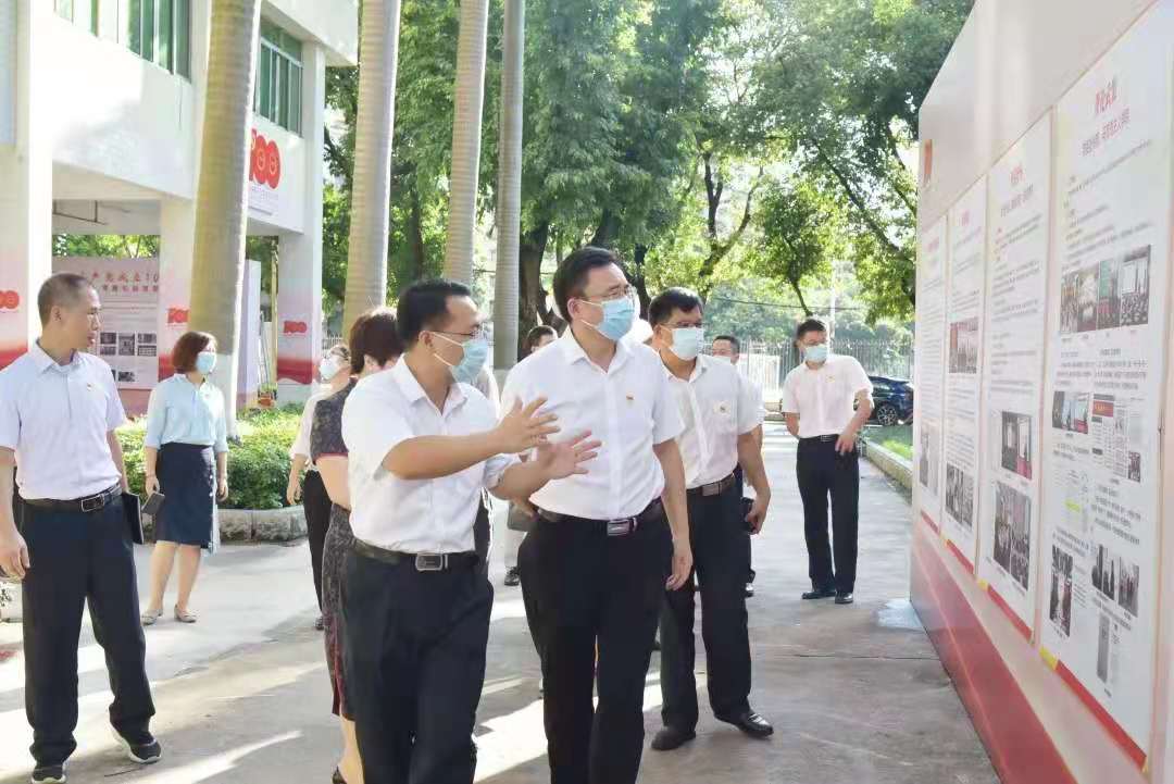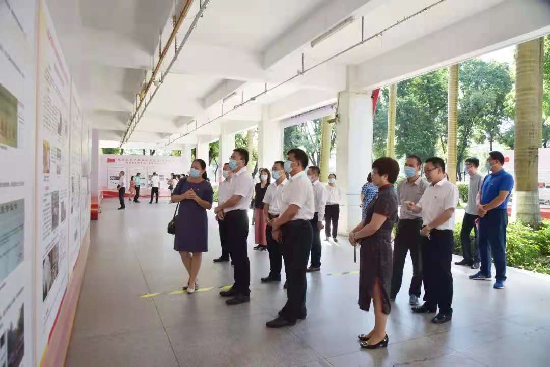 7月8日下午,学校党委书记宋垚臻,党委副书记李海燕、邱亚洪,党委常委、副校长田允波莅临现场参观指导,学校党史学习教育工作领导小组办公室成员、二级党组织书记、各职能部门负责人随同参观。