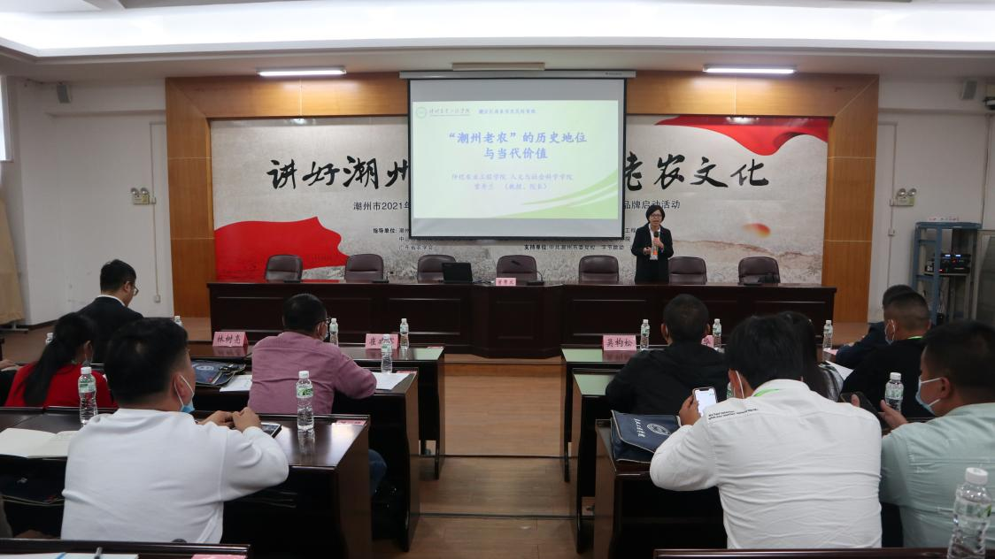人文与社会科学学院院长曾秀兰应邀到潮州市开展“潮州老农”专项调研并以《“潮州老农”的历史地位与当代价值》为题,从“潮州老农”是潮州的一段荣光记忆、历史贡献和精神价值、当代价值和行动启示三方面对“潮州老农”做了深入的学术分析,表示“求变、吃苦、精技、奉献、创新”的精神具有现实的当代价值,更是潮汕文化精神内核的重要部分,应系统整理发掘,做好传承推广。潮州市农业农村局副局长林树亮介绍了《潮州市新一代“潮州老农”认定工作方案》。