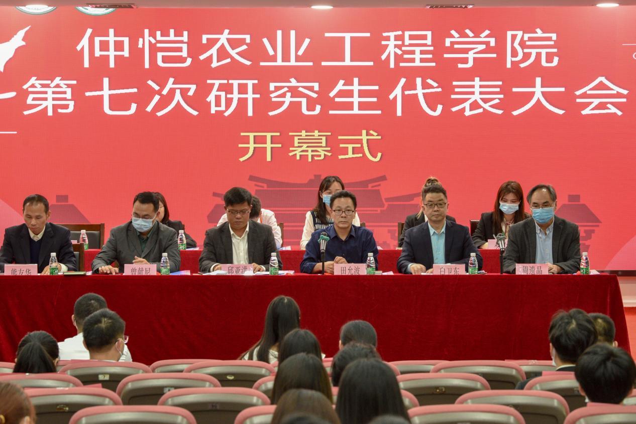 10月26日,仲恺农业工程学院第七次研究生代表大会在海珠校区学术报告厅召开。校党委副书记邱亚洪,党委常委、副校长田允波,党委常委、宣传部、统战部部长曾献尼,党委常委、研究生工作部(处)部(处)长白卫东,校团委书记熊友华,研究生党总支书记周遗品,各学院党委副书记以及70名研究生代表出席本次大会。