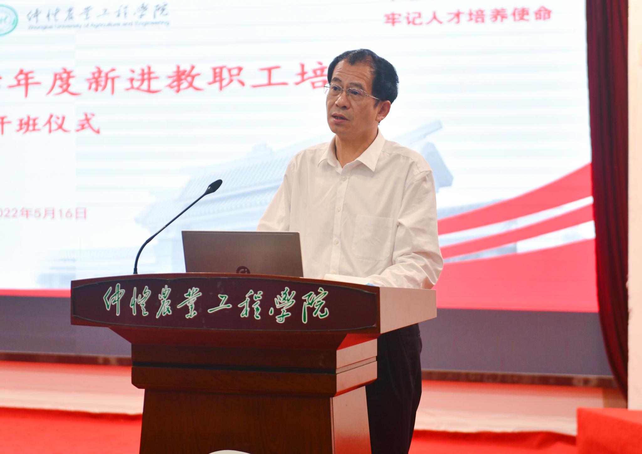 林俊睦作动员讲话。他首先介绍培训教职工的基本情况,并指出此次培训共安排9大模块、17场专题报告,邀请16位校内外领导、专家、学者以及校内8个职能部门的主要负责人主讲,通过集中学习、以老带新、总结交流的方式,采用理论学习与工作实践、综合培训与分类培训、导师指导与个人研修的“三结合”举措,安排紧凑、内容丰富、方式多样,培训尤其突出第一课堂的主导作用,体现学校党委对落实立德树人根本任务的高度重视,反映学校领导对各位新同事的关心和期待,希望同志们珍惜机会,以高度的责任感和工作使命感,努力取得实实在在的收获。最后,希望全体教职工要牢记教育初心,担当教育使命;要践行师德规范,坚守教育情怀;要做好职业规划,坚持终身学习,努力成为“四有”好教师。