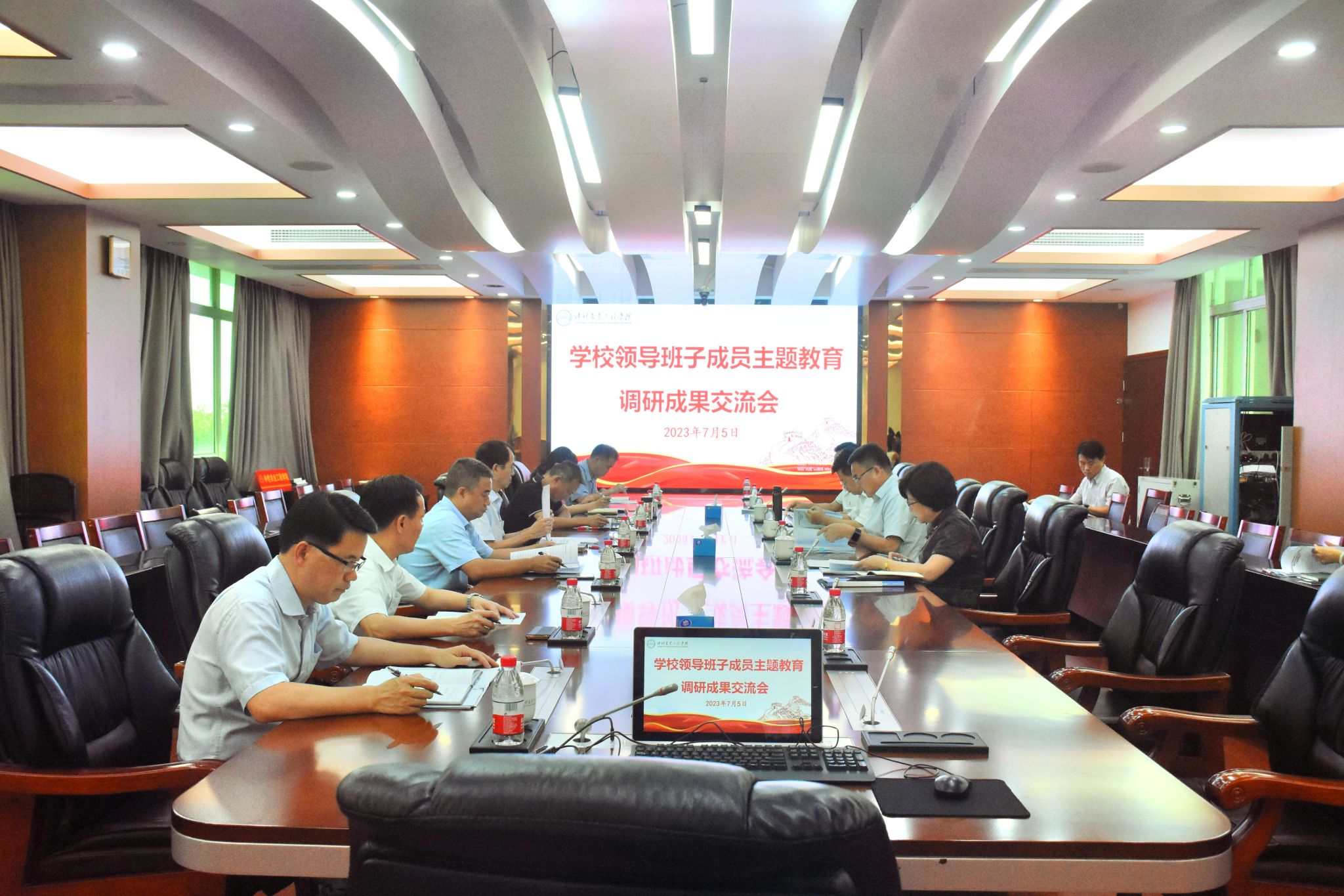 7月5日下午,学校领导班子成员学习贯彻习近平新时代中国特色社会主义思想主题教育调研成果交流会顺利召开。学校领导班子成员出席会议,主题教育办公室负责人、各调研组牵头单位负责人参加会议。会议由校党委书记宋垚臻主持。
