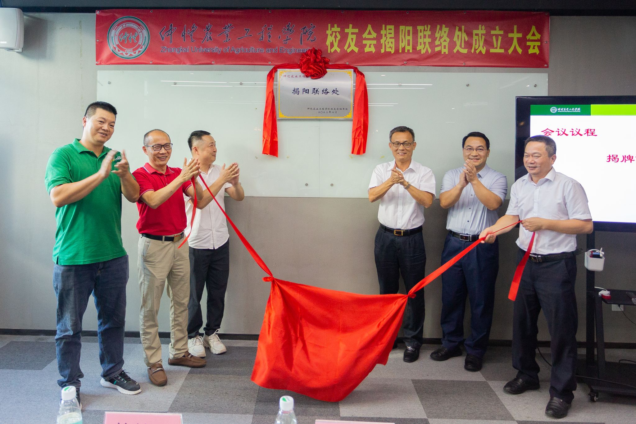会上,曾献尼部长宣读《关于同意成立仲恺农业工程学院校友会揭阳联络处的批复》。在校友们的共同见证下,张文峰副校长、曾献尼部长、黄礼彬书记与校友代表等缓缓拉开红绸,银光闪亮的仲恺农业工程学院校友会揭阳联络处牌匾呈现在大家面前,现场响起热烈的掌声,标志着学校校友组织再添新成员。