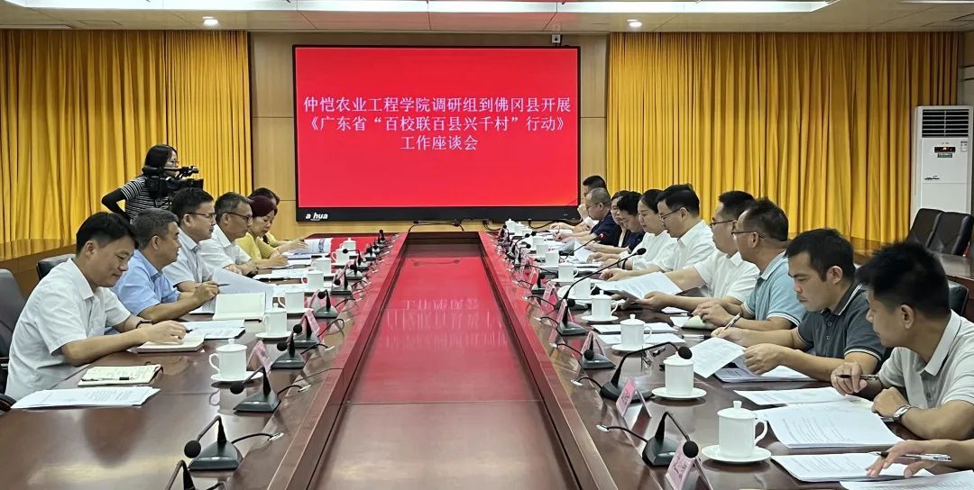 座谈会上,江红平县长介绍了佛冈县的资源优势、乡村建设、乡村产业发展等基本概况以及科技推进产业提升的经验。江县长指出,作为“百百千行动”试点县之一,佛冈深感责任重大的同时,勇于把责任扛在肩上,希望学校发挥人才和技术优势为当地乡村振兴助力赋能,打造校地合作样板。宋垚臻书记表示,学校高度重视“百百千行动”的落实,建立了领导小组和沟通协调机制,将围绕双方合作目标和任务,以共建实践基地为基础,做好乡村规划建设、乡村建设人才培训、驻村服务等工作。宋书记强调各部门要摸准地方需求,充分调研,以久久为功的战略定力持续推进结对工作,为“百百千行动”探索出可复制可推广的经验。