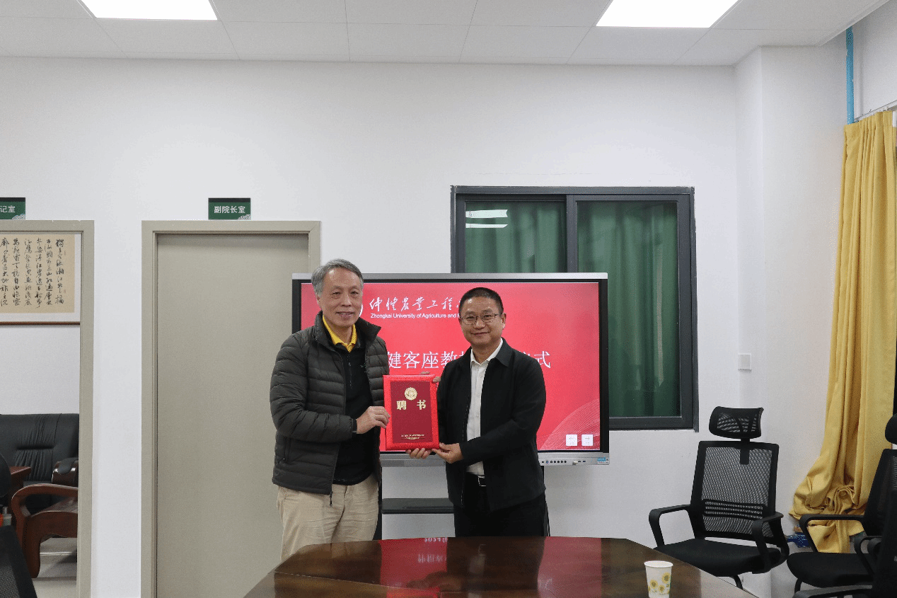廖明为向培健教授颁发了客座教授聘书并致辞。他代表学校对向培健教授表达深切的感谢与热烈欢迎,他高度了评价了向教授在植物病理学和生物信息学领域的卓越贡献,以及其与国内外多所知名院校建立的广泛合作关系。廖明对向教授与我校多年的友好往来表示赞赏,并期望其加盟能够促进学校在国际科研合作、人才引进与培养、共建实验室及产出标志性成果等方面的进一步发展。他也期待向教授继续发挥其学术影响力,助力学校在更广领域的交流与合作,推动学校学科和科研工作的高质量发展。