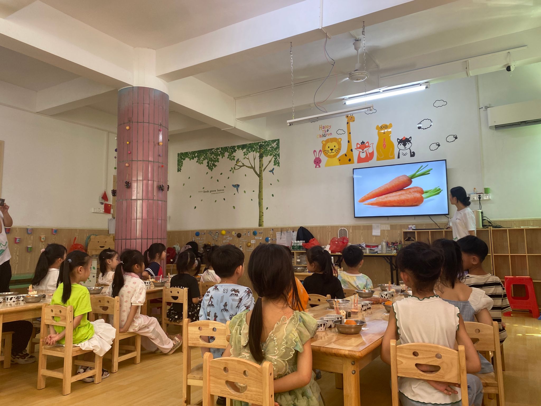 7月10日,科普志愿服务团结合学院“你看起来好像很好看”心理健康教育系列活动,在丰顺新城幼儿园开启了番薯冰淇淋的美食之旅。学院质安231班朱洪漫同学带领小朋友们,以蒸熟的番薯为主要食材,逐一完成捣碎番薯泥、铺上炼乳、添加零食小料制作步骤,制作过程中,小朋友们都全神贯注,为每一个动手的实践结果欢呼雀跃。