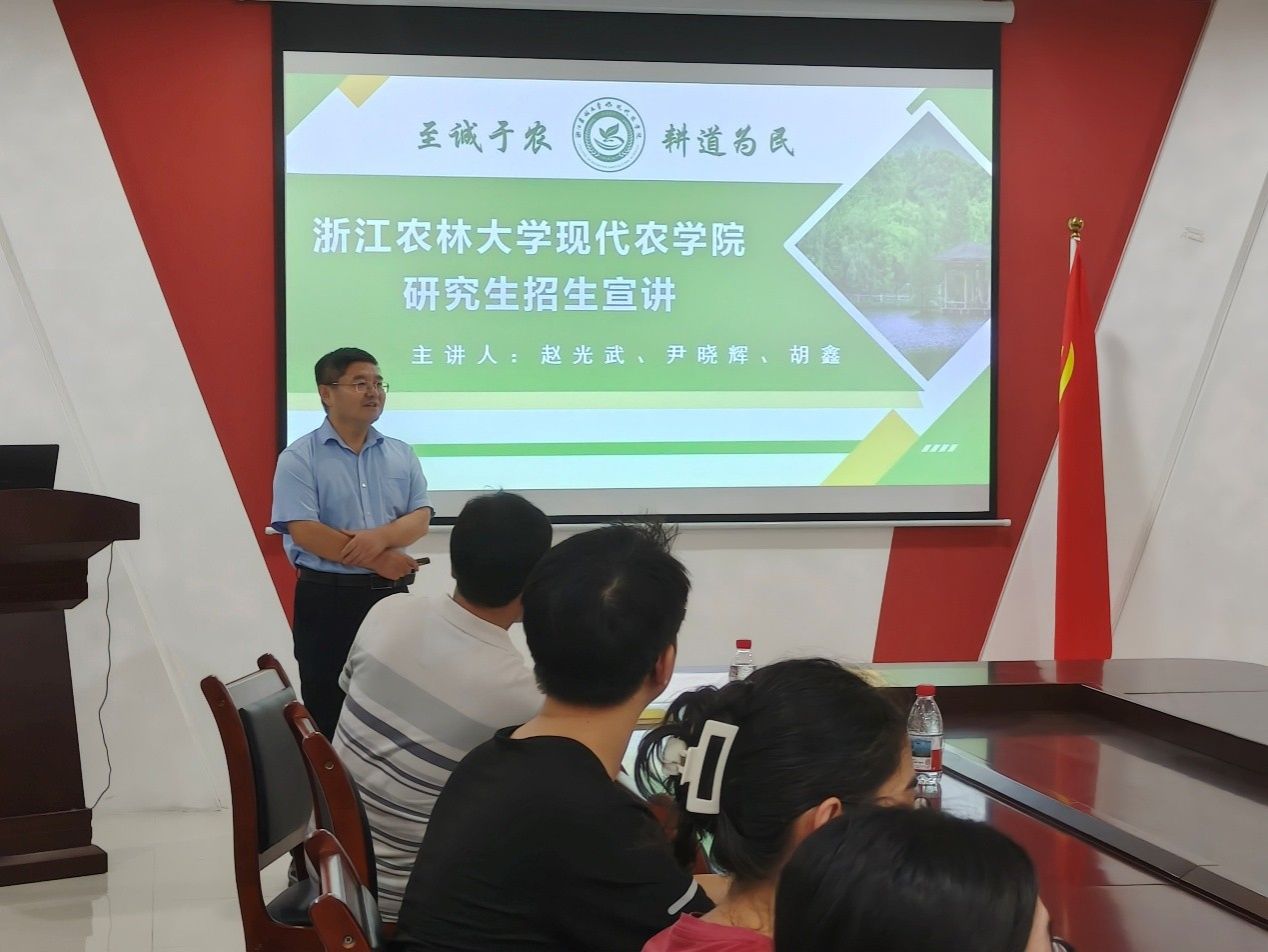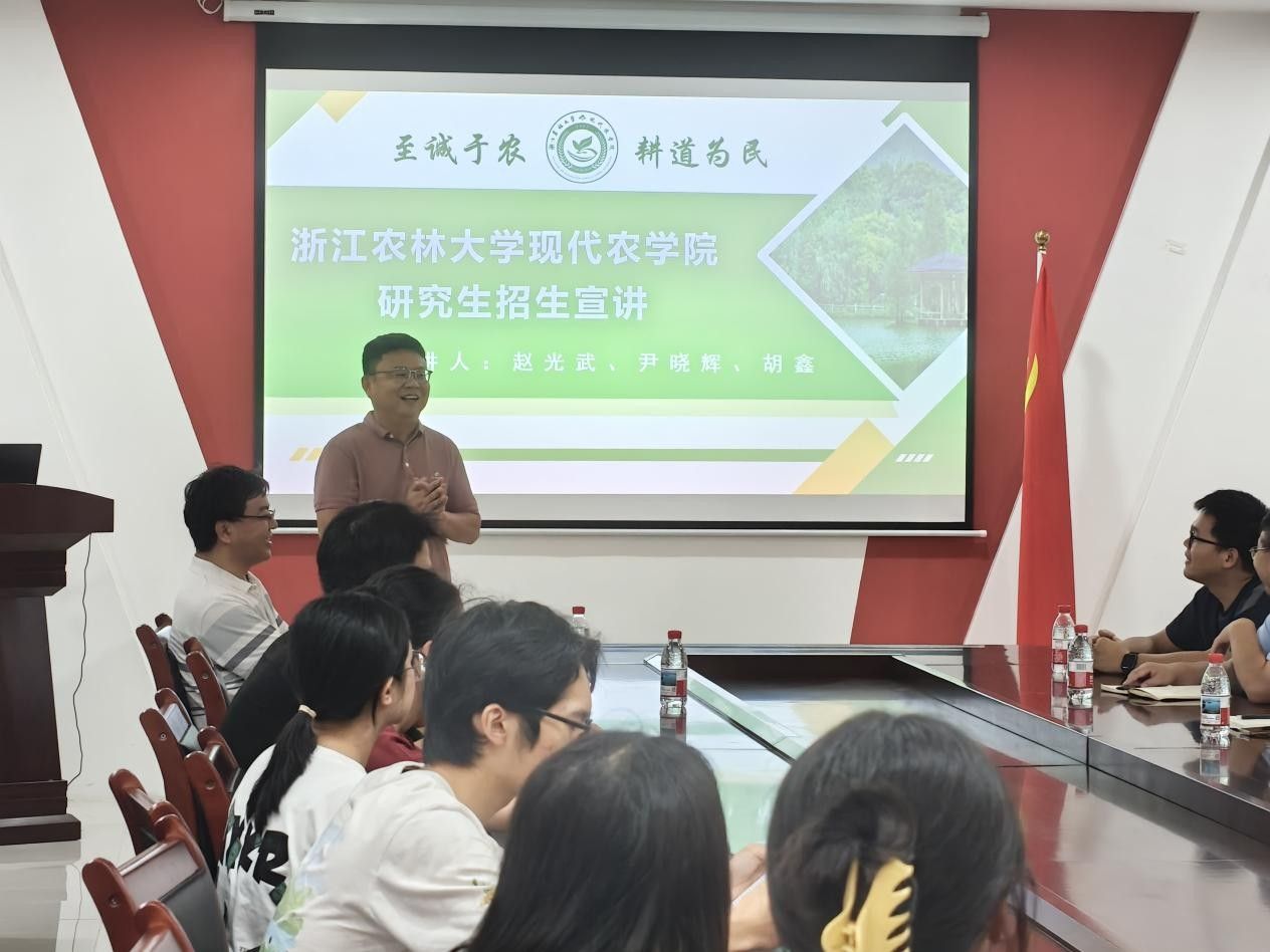 随后,赵光武详细介绍了浙江农林大学现代农学院的办学历史、学科特色和研究生培养体系。他强调,学校坐落于杭州城西科创大走廊,毗邻多个高新技术企业,为学生提供了优质的科研实践平台。在研究生资助方面,学校构建了完善的奖助体系,能够充分保障学生的学习生活需求。