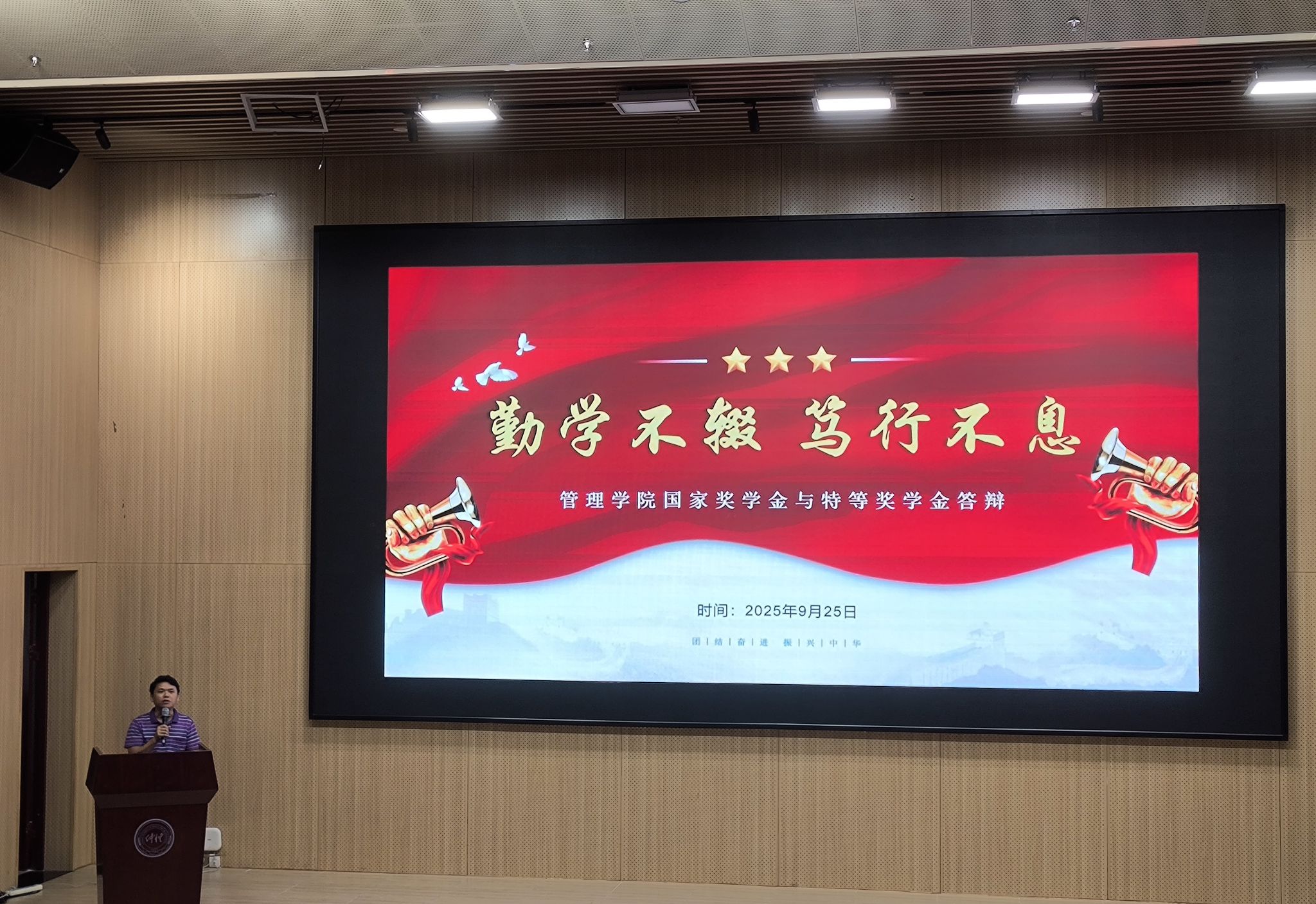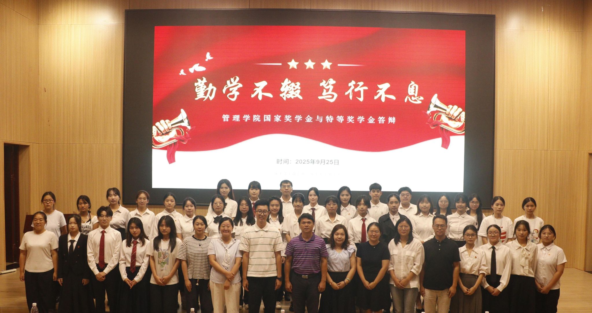 本次国家奖学金和特等奖学金答辩会的成功举办,不仅为优秀学子提供了展示与交流的平台,也为新生上了一堂生动而深刻的“开学第一课”,鼓励他们播下梦想的种子,期待明日笃行不息的浇灌与成长。管理学院全体师生将以此次大会为新的起点,继续弘扬优良学风,坚守育人初心,为学校高质量发展和社会进步贡献更多的“管院智慧”与“管院力量”。