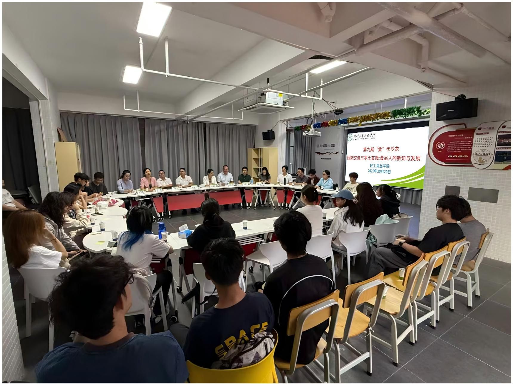 10月20日下午,轻工食品学院联合国际教育学院在白云校区21栋听能活动室成功举办第九期“食”代沙龙活动。本期沙龙以“国际交流与本土实践:食品人的新知与发展”为主题,旨在引导食品科学与工程(国际班)学生明晰学业规划、树立行业理想、强化使命担当。轻工食品学院党委书记刘胜洪、院长曾晓房、党委副书记吉燕,国际教育学院副院长刘敏姬、国际教育科科长吴慧珊以及食品国际班大一至大三40余名师生共同参与。活动由吉燕主持。