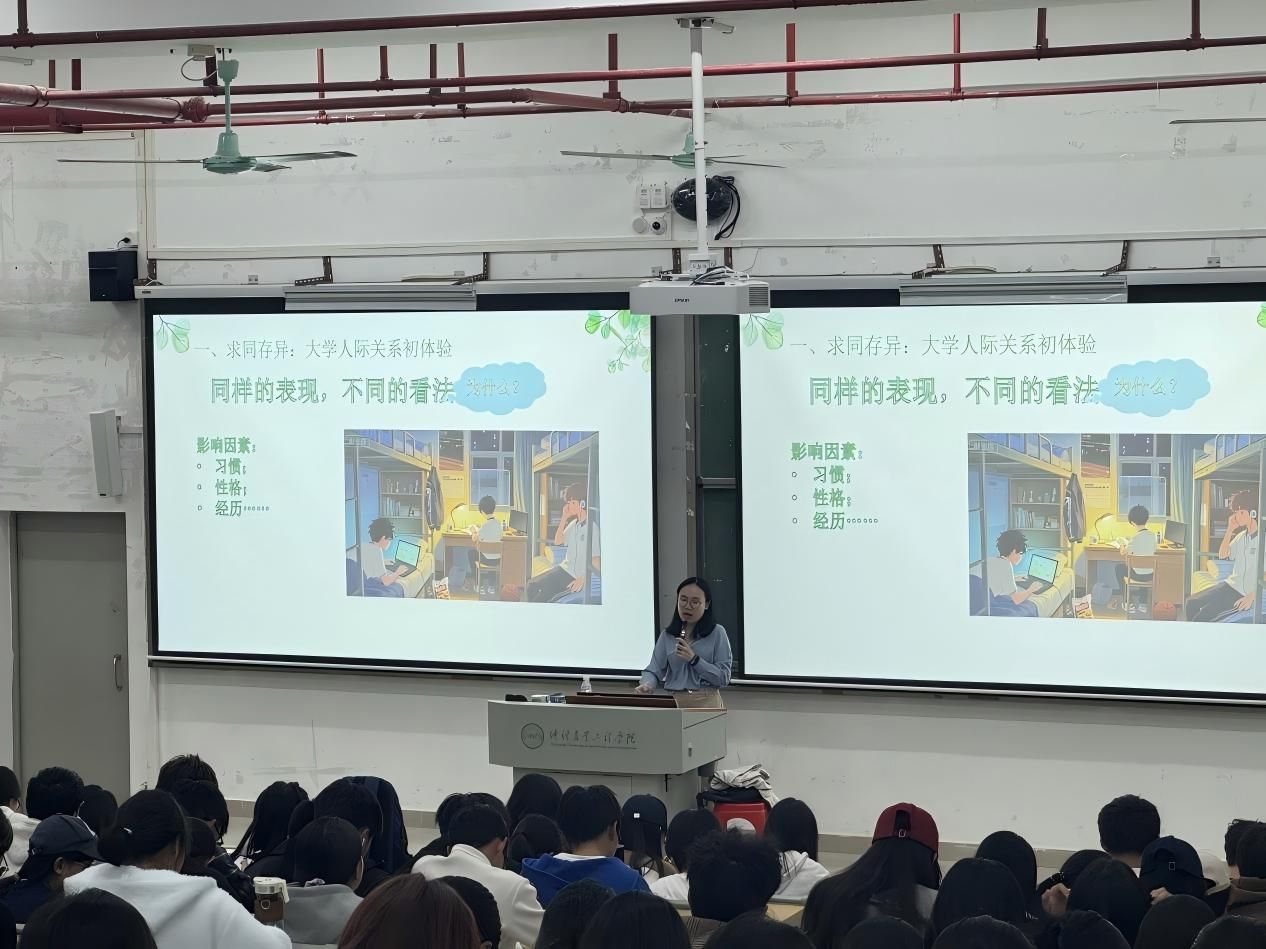 邓慧君以 “解锁大学‘心’生活 —— 新生人际交往指南” 为主题,从三方面助力新生提升社交能力:首先引导新生觉察人际交往中的差异,分析习惯、性格、经历等对认知的影响;接着讲解实用心理学沟通技巧,帮助新生化解交往难题;最后通过互动游戏增强新生对人际交往的理解与适应力,并强调交往中清晰度、真实度的重要性,鼓励新生敞开心扉,积极结交新朋友。