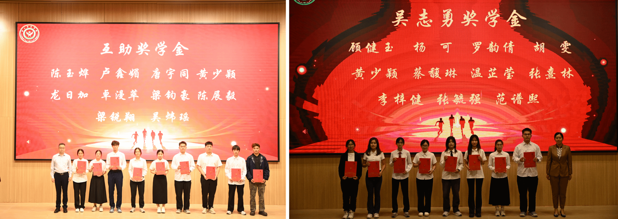 在荣誉表彰环节,白卫东为获得互助奖学金的同学颁发证书,吉燕为吴志勇奖学金获得者颁奖。两份学院奖学金不仅是对获奖学生勤奋学习、互助友爱的充分肯定,更是对全院学生树立崇高理想、锤炼过硬本领的积极引导,彰显了学院立德树人、奖优促学的育人导向。
