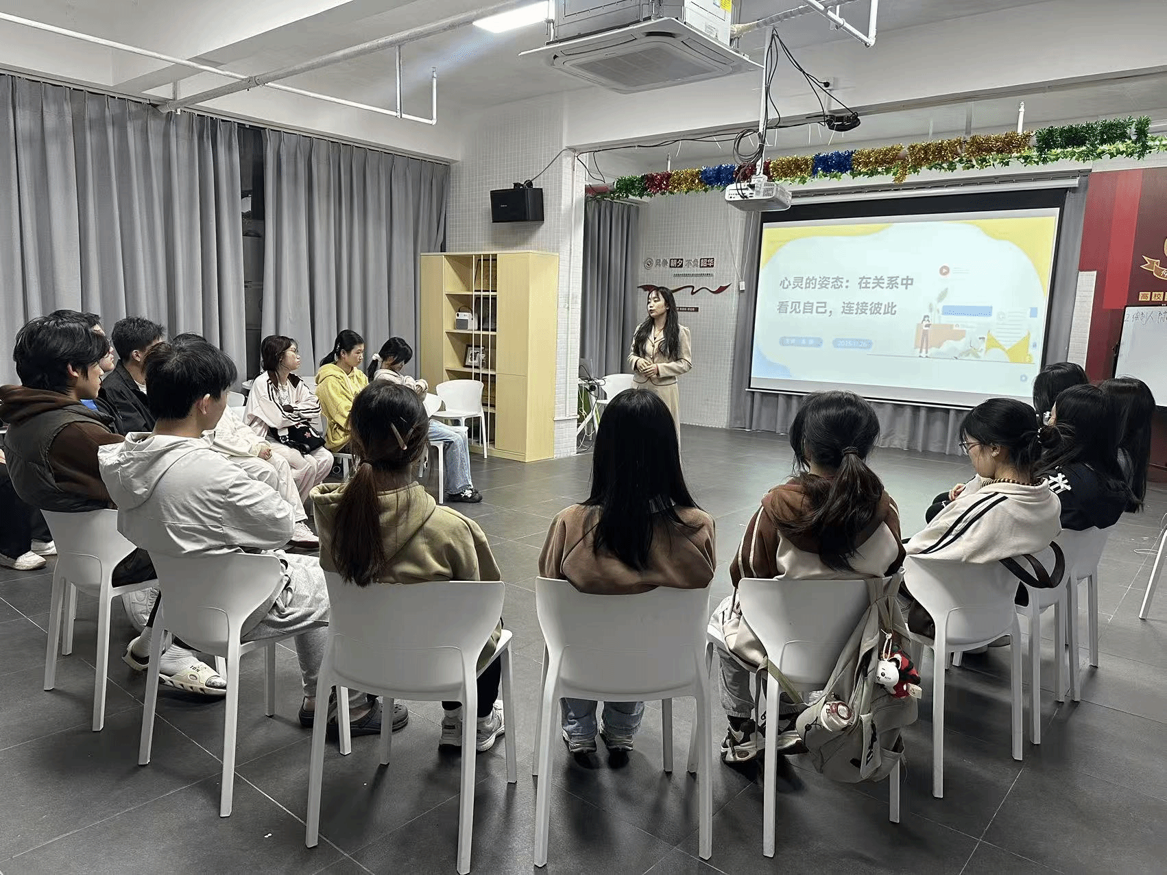 11月26日,轻工食品学院于学生社区21栋听能活动室举办以“心灵的姿态:在关系中看见自己,链接彼此”为主题的心理委员团体辅导活动。本次活动特邀学校心理咨询中心高静老师主讲,学院心理指导老师吴晓瑜协同组织,大一至大三全体心理委员共同参与。