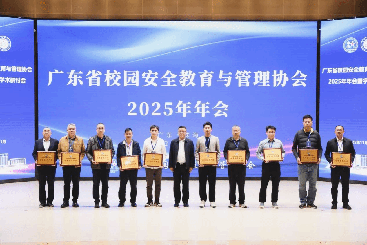 大会对2025年校园安全教育与管理工作表现突出单位及个人予以表彰,我校获评“2025年度广东省校园安全教育与管理协会优秀会员单位奖”、“2025年度广东省校园安全教育与管理协会单位杰出贡献奖”,学校保卫部部长陈丹雄获评“2025年度广东省校园安全教育与管理协会个人杰出贡献奖”,这是对我校长期以来高度重视并扎实推动校园安全工作的充分肯定与褒奖。