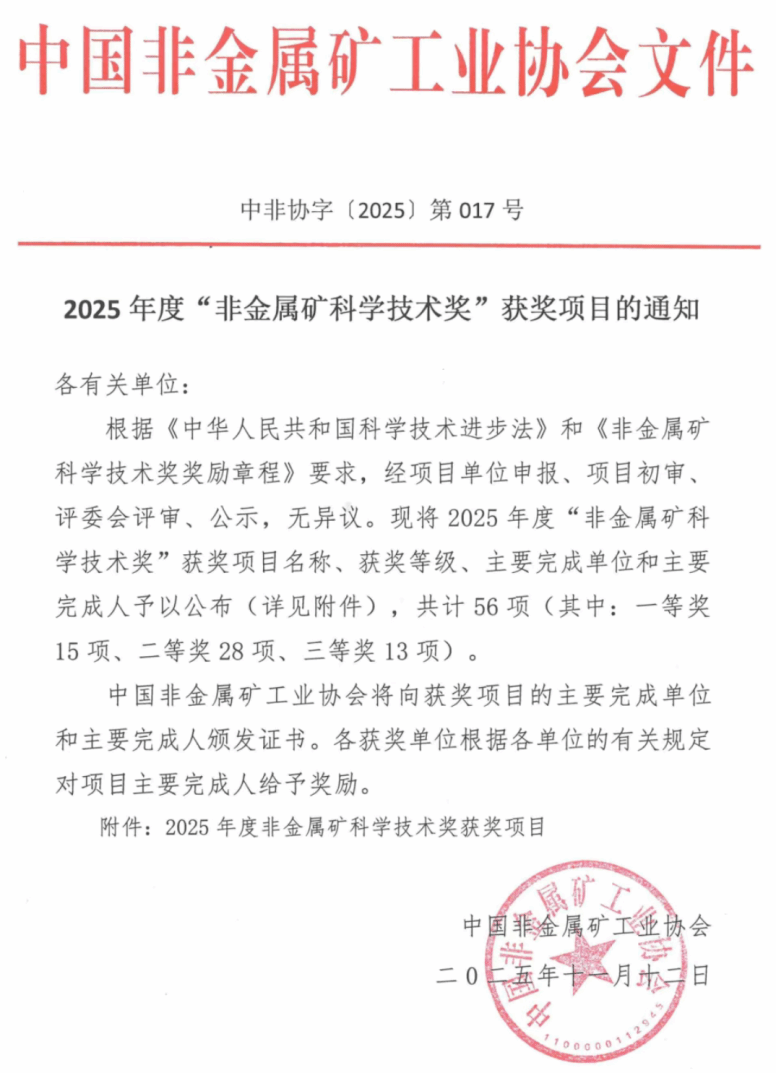 非金属矿科技进步奖是中国非金属矿行业的最高奖项,旨在表彰在科学研究、技术创新、成果推广及产业化等方面做出突出贡献的组织和个人。