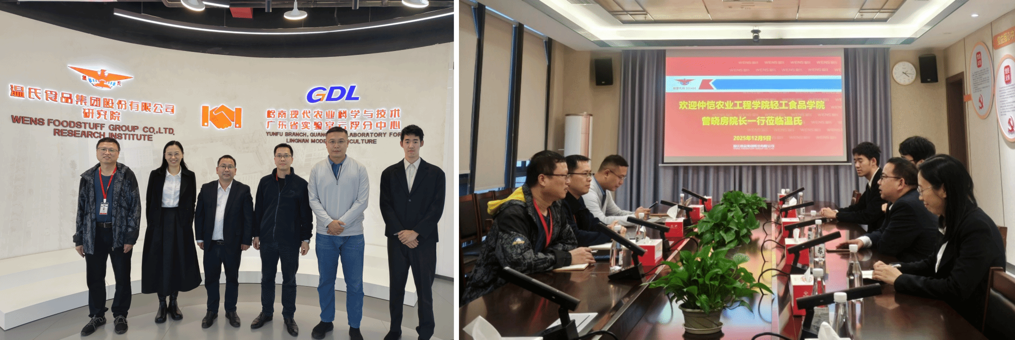 12月5日,学院一行走访温氏集团研究院,实地考察其在食品研发、质量安全、智能制造等领域的创新成果,详细了解企业人才需求与技术攻坚方向。双方围绕“食品加工关键技术突破”“产学研协同育人机制构建”“‘双师型’教师队伍建设”“实习实训基地共建”“毕业生高质量就业”等议题展开务实研讨,在多项合作领域达成共识。温氏集团研究院相关负责人表示,集团高度重视与高校的产学研合作,期待与学院在技术攻关、成果转化、人才培养等方面开展更深层次、更广泛的合作,共同培养适应行业发展的创新型、应用型高素质人才,实现校企互利共赢、共同发展。