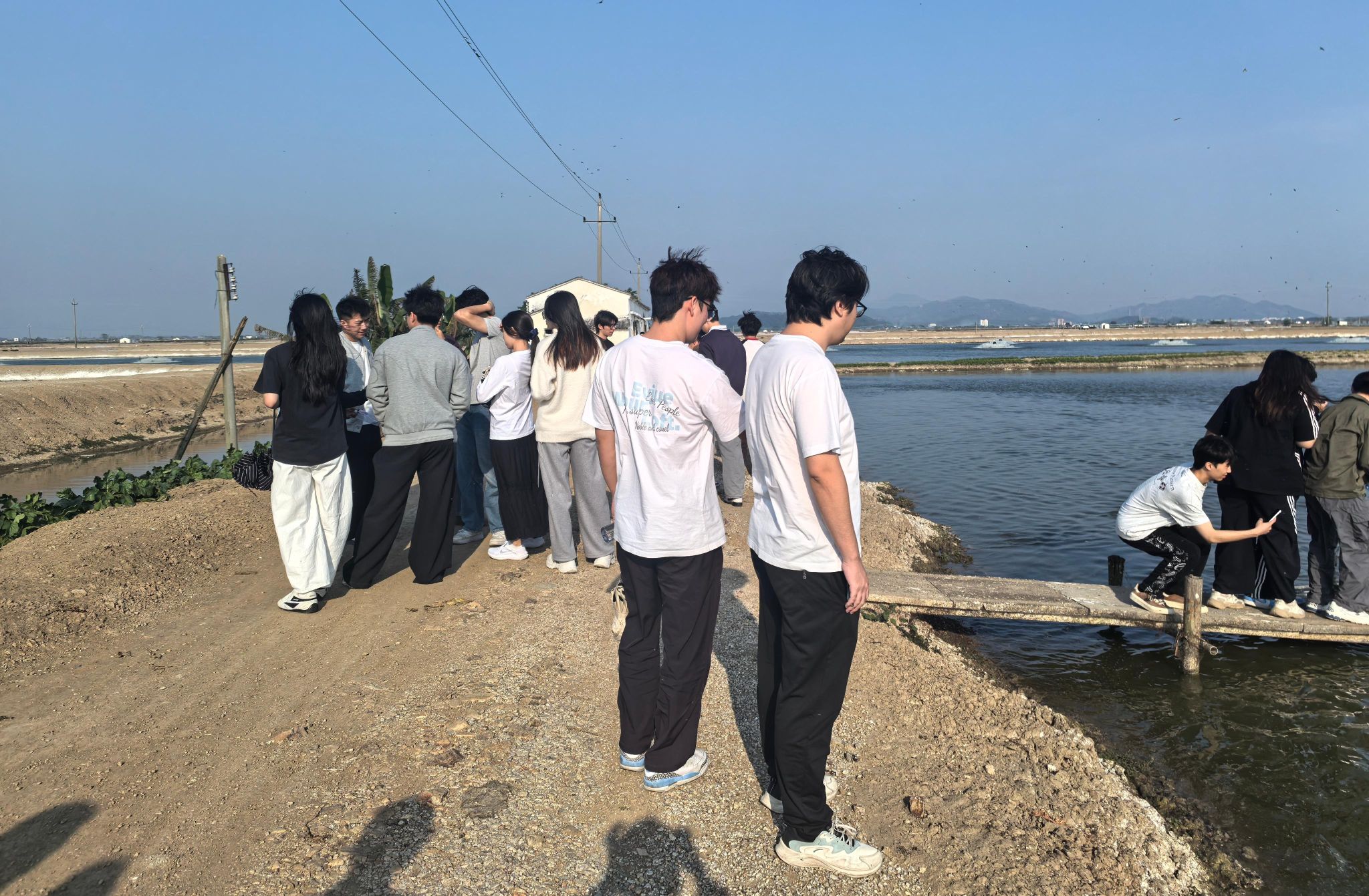 公司负责人徐远宏向同学们介绍了公司的发展历程、养殖品种、规模化生态养殖模式及当前水产养殖行业的前沿动态。随后在企业技术人员的引导下,同学们深入养殖基地进行实地观摩与学习,参观了鳗鲡室外养殖池、投喂管理区以及分级分选等操作流程。技术人员就鳗鲡的生物习性、水质调控、病害防控、饲料投喂及日常精细化管理等关键技术进行了系统讲解。同学们结合课程中所学的理论知识,积极提问,与企业专家及生产人员就鳗鲡养殖实际问题展开热烈交流和探讨。