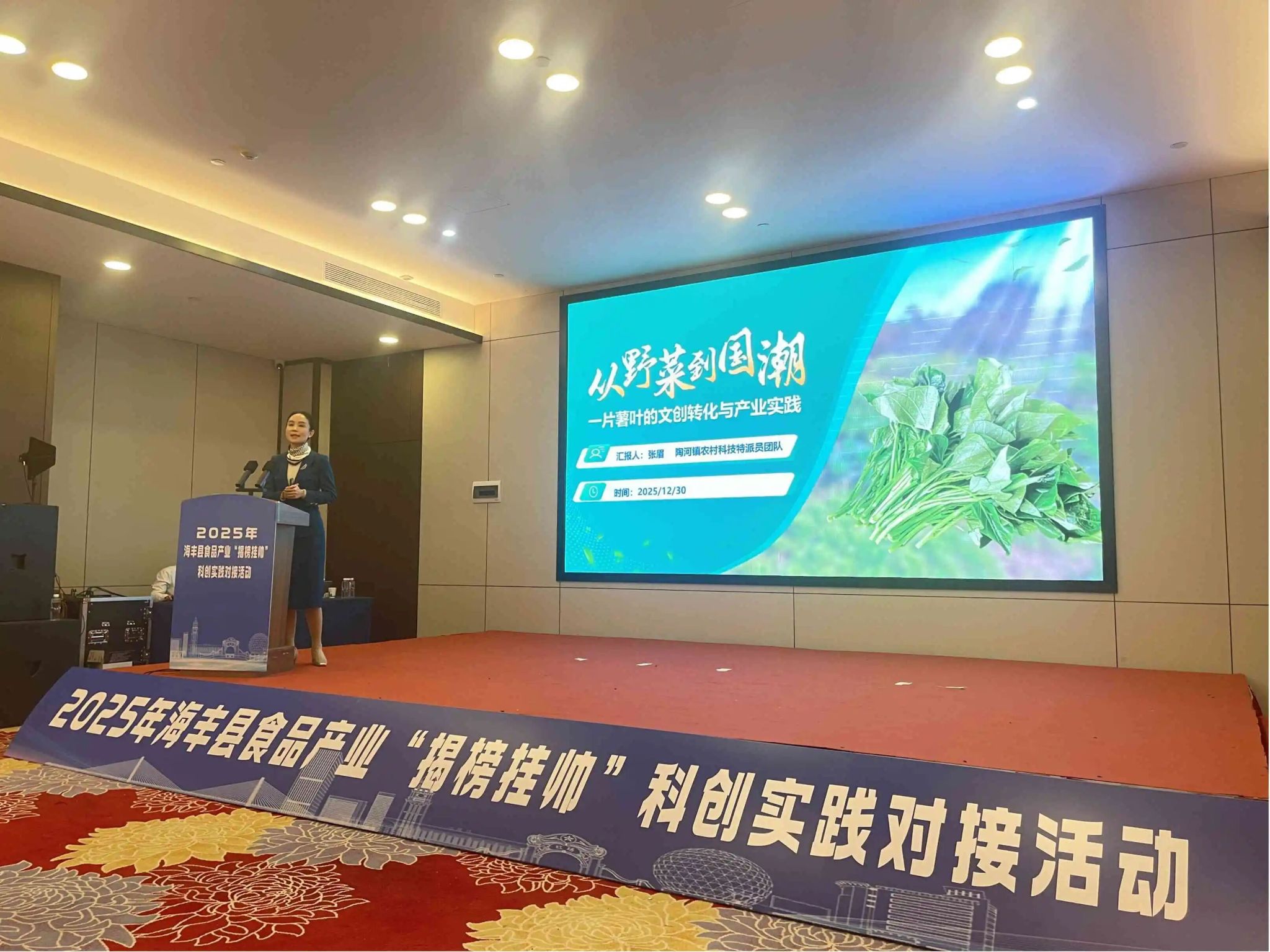 为深入贯彻党的二十大和二十届四中全会精神,推动科技创新与产业创新深度融合,在汕尾市科学技术局、海丰县“百千万工程”指挥部办公室和中共海丰县委人才工作领导小组办公室的指导下,海丰县科技工业和信息化局联合汕尾市农村科技特派员工作站、海丰县农村科技特派员工作站于12月30日,举行2025年海丰县食品产业“揭榜挂帅”科创实践对接活动,来自政府部门、科研院所、食品企业、金融机构及新闻媒体的70余名代表齐聚一堂,共商技术攻关之计,共话产业发展蓝图。