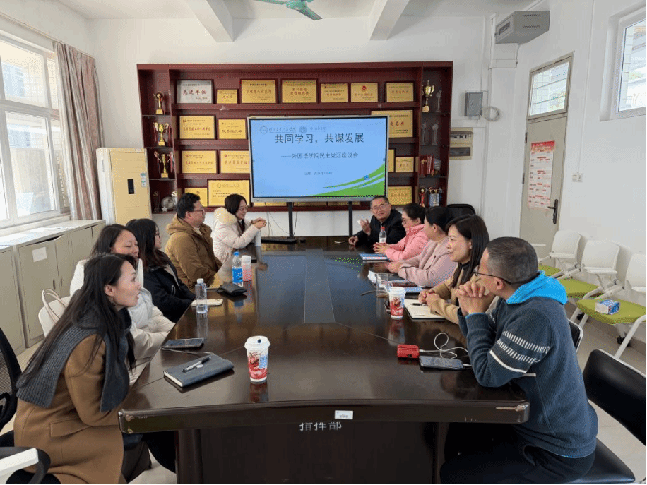 为深入学习贯彻党的二十届四中全会精神,凝聚民主党派智慧力量,共谋学院“十五五”发展新篇章,1月9日下午,外国语学院在白云校区刘宇新楼503会议室召开民主党派教师座谈会。学院领导班子成员与学院民主党派教师参加会议,座谈会由学院党委书记柴明勤主持。