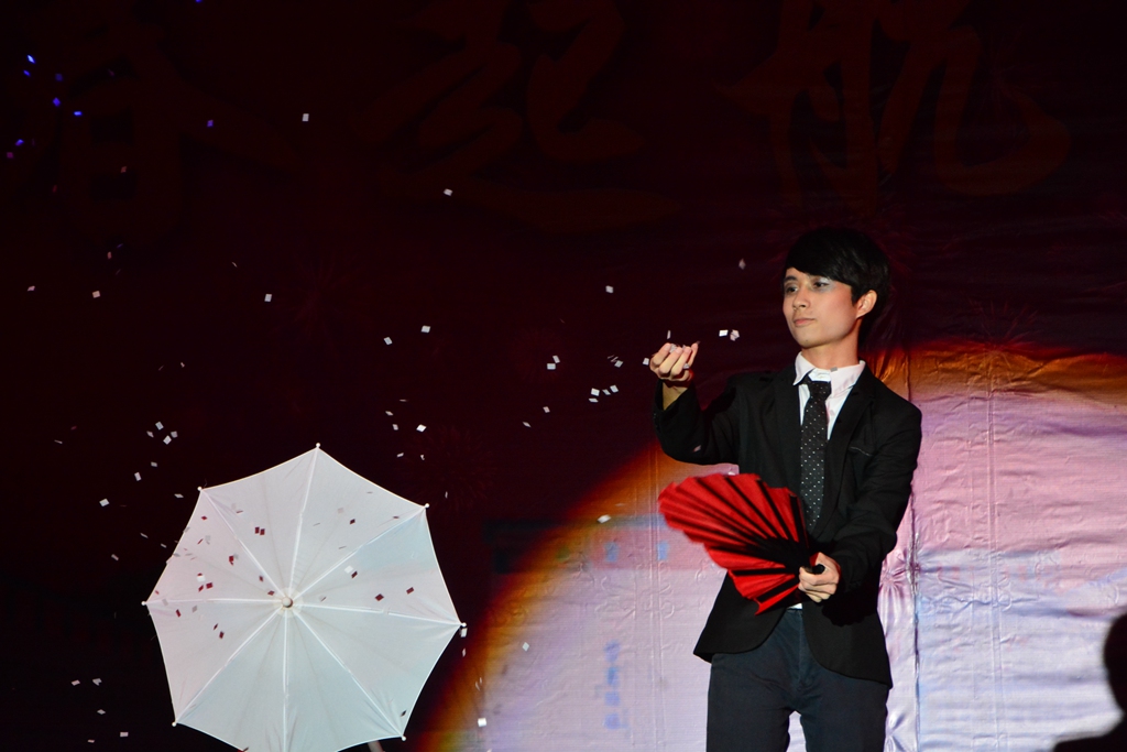 变化莫测的魔术表演《伞扇幻想》吸引着观众眼球