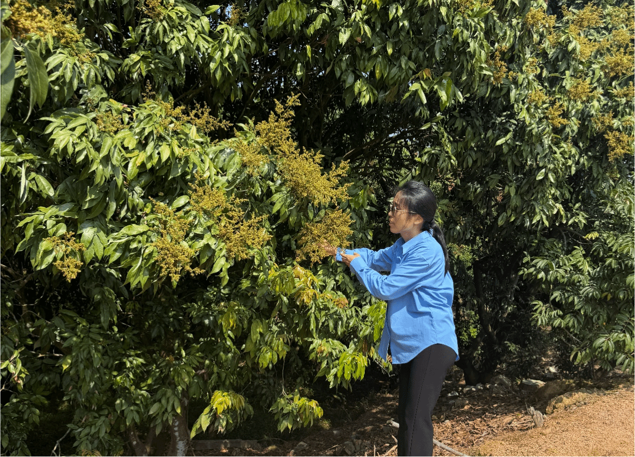 聚焦特色产业提质,李婵娟与工作队队长陈家群深入田间地头,实地查看暖冬天气对当地荔枝花芽生长的影响,结合自身科研经验,详细询问种植户荔枝养护情况,分析暖冬气候可能带来的生长风险,并针对性提出科学管护建议,为荔枝产业稳产保收筑牢技术防线,持续推动龙尾镇特色种植业高质量发展。