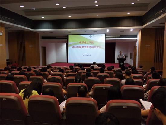 6月11日晚,化学化工学院在学术报告厅召开了2012级学生期末考前动员会暨2016年考研动员会。化学化工学院党总支书记廖列文、院长尹国强、党总支副书记邱树华、副院长冯光炷等出席了此次会议。会议由廖列文书记主持。