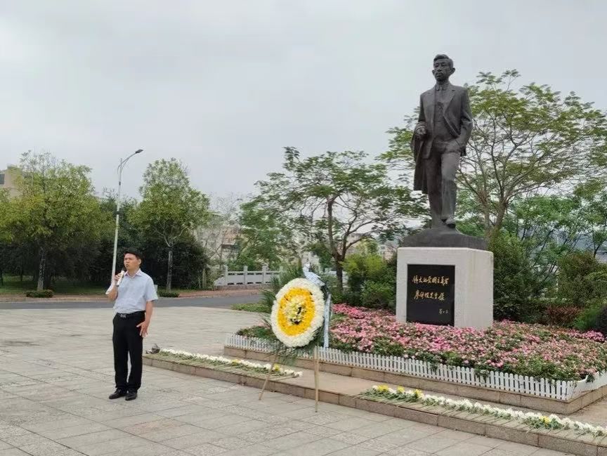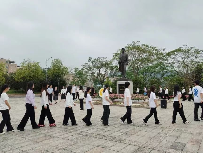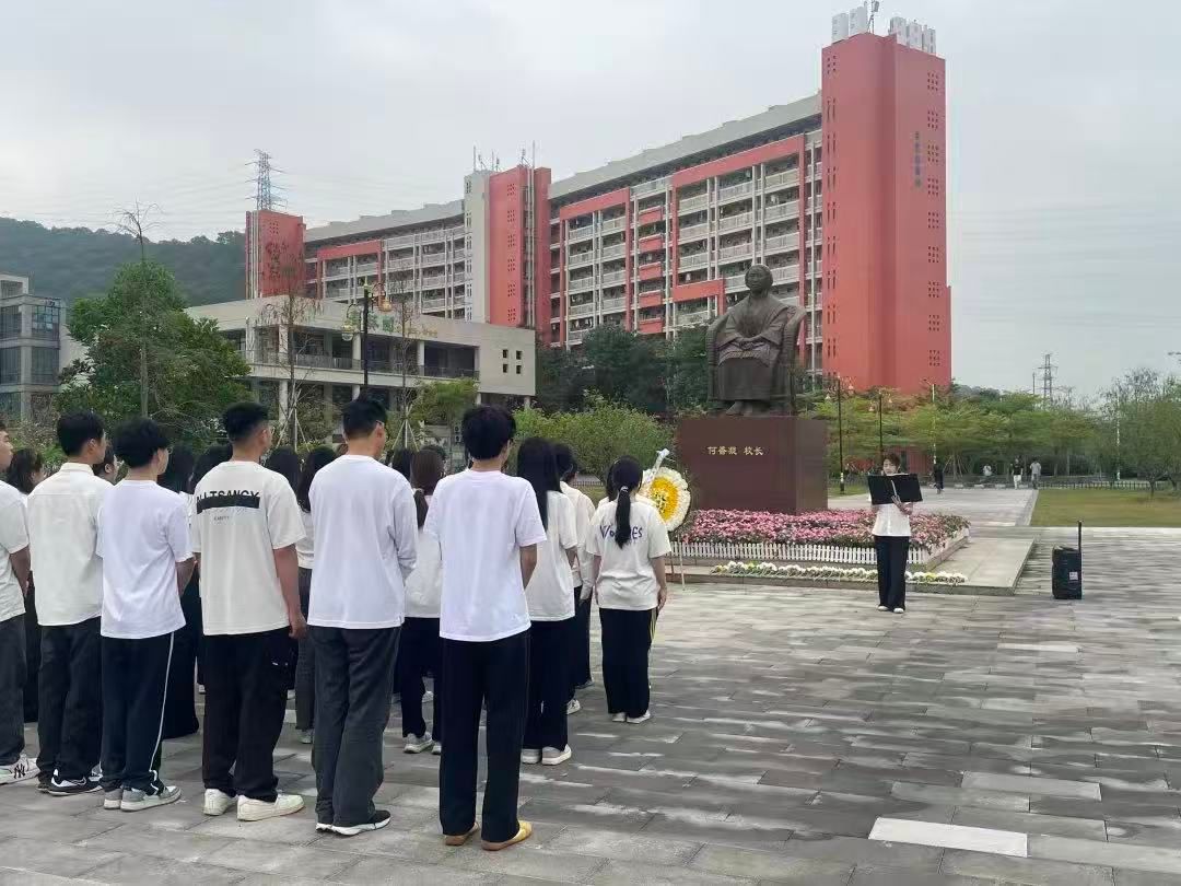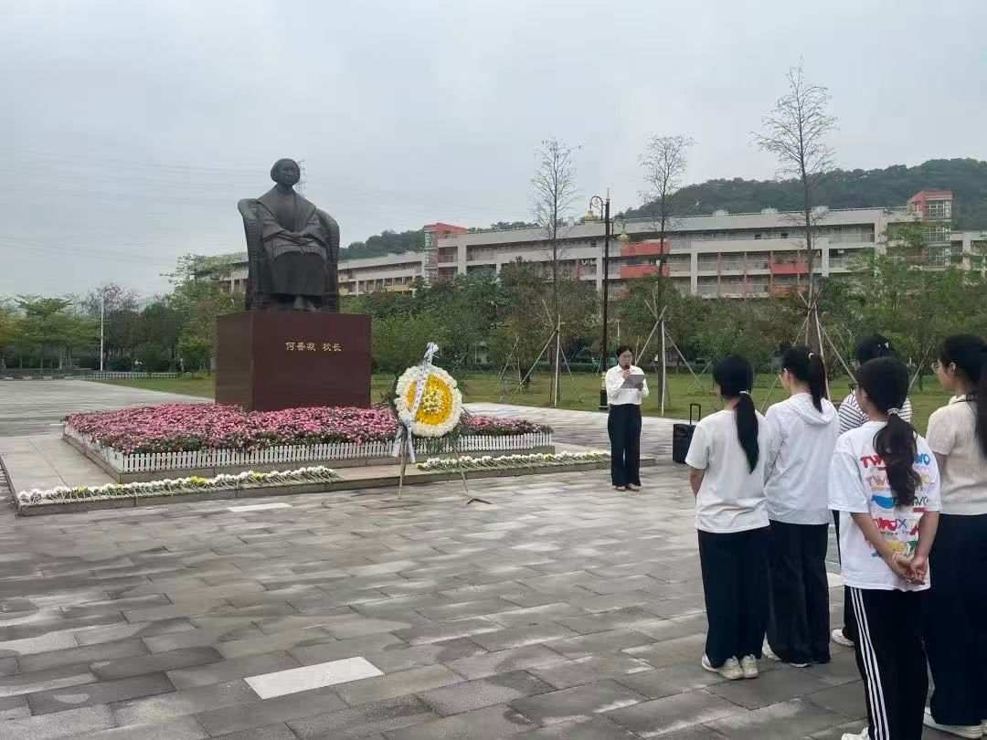 最后,全体人员整齐肃立,集体默哀,随后向廖仲恺先生、何香凝先生铜像深深鞠躬,致以最崇高的敬意。师生代表依次绕行瞻仰铜像,并有序上前敬献鲜花,寄托对革命先辈的深切缅怀与无限追思。