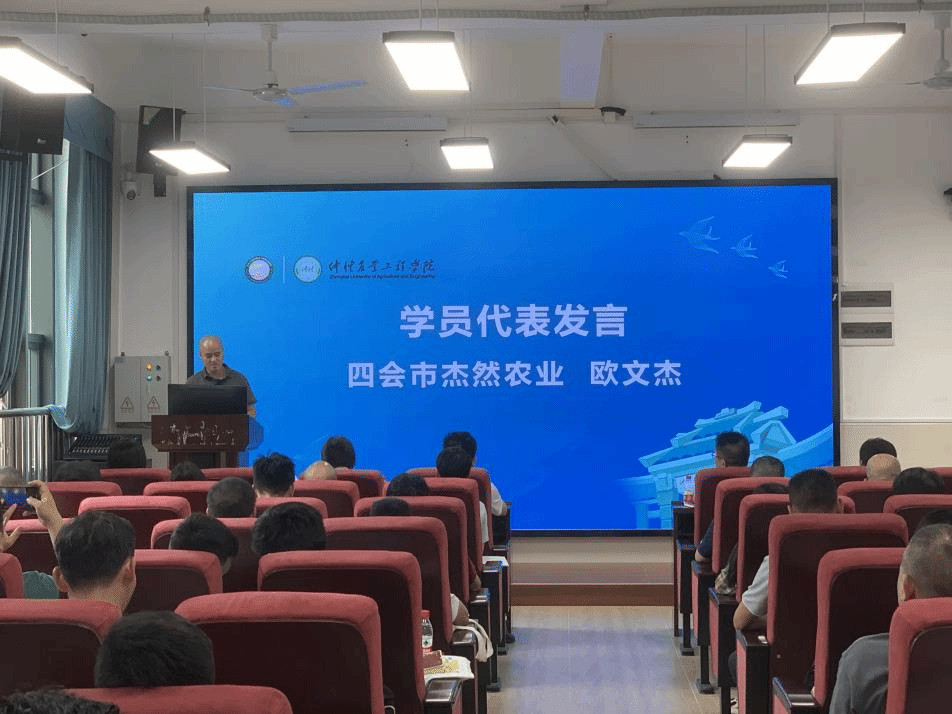 学员代表、肇庆四会杰然农业总经理欧文杰在发言中说,本次培训机会十分难得,必将认真学习、满载而归。他表示,将认真研学授课内容,吃透弄懂养殖专业技术,把所学知识切实带回生产一线、运用到鱼塘养殖实践中,以实干打造示范样板。同时主动发挥引领作用,分享实操经验与养殖技术,带动周边养殖户共同进步、携手增收。