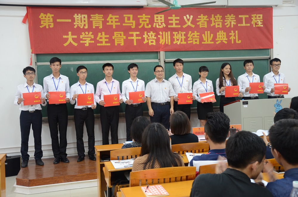 11月30日下午,第一期青年马克思主义者培养工程大学生骨干培训班(以下简称“青马班”)结业典礼在杨钊杨勋楼104课室举行。团委书记曾献尼出席结业典礼。首批101位青年马克思主义者培养工程大学生骨干顺利结业。