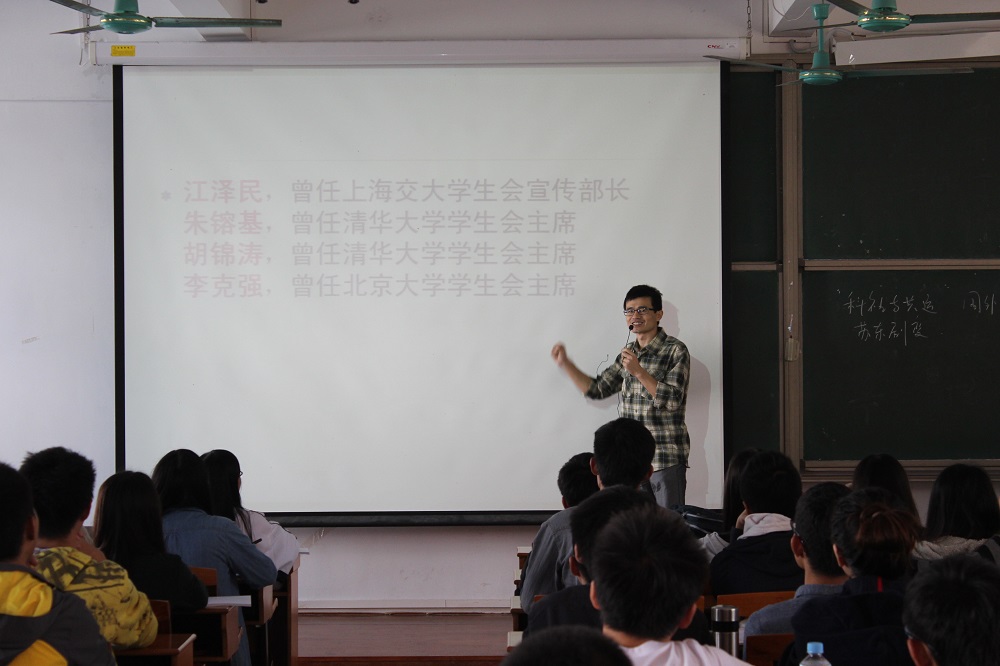 11月23日上午,我校党委宣传部部长唐明勇教授为培训班学员作题为《知仲恺,学仲恺,爱仲恺》的报告。团委书记曾献尼出席。唐老师首先阐述了马克思主义与仲恺先生的关系,仲恺先生是革命先驱,他在动乱的时代,让马克思主义深入中国。何谓知仲恺,为何知仲恺?同学们了解了仲恺先生的革命生涯、革命情怀、革命功绩,同时也了解了学校的发展历程,从中专学校到本科院校,从一个校区到两个校区,经历了非常多的困难和障碍,仲恺今日的辉煌,是仲恺人的骄傲。在学仲恺方面,唐明勇老师表示,我们今天缅怀仲恺先生要分三个层面,一是仲恺伟人,二是仲恺精神,三是仲恺学校。同时,我们要学习“三种精神”,学会爱国精神、清正廉洁精神和艰苦创业的精神。传承“三种品质”,艰苦奋斗的创业品质、爱国爱农的政治品质、勤慎耐劳的人格品质。爱仲恺就是每个同学成才,爱仲恺就是每个同学都能成功,唐老师如是说。唐明勇老师希望青年学生做到“二要三不要”,二要,要健康,要学习。三不要,不要浪费青春,不要轻而愤青,不要浪费感情。同时,唐老师希望学员们热爱仲恺,学会自信,好好珍惜大学四年的时光,珍惜同学情谊。