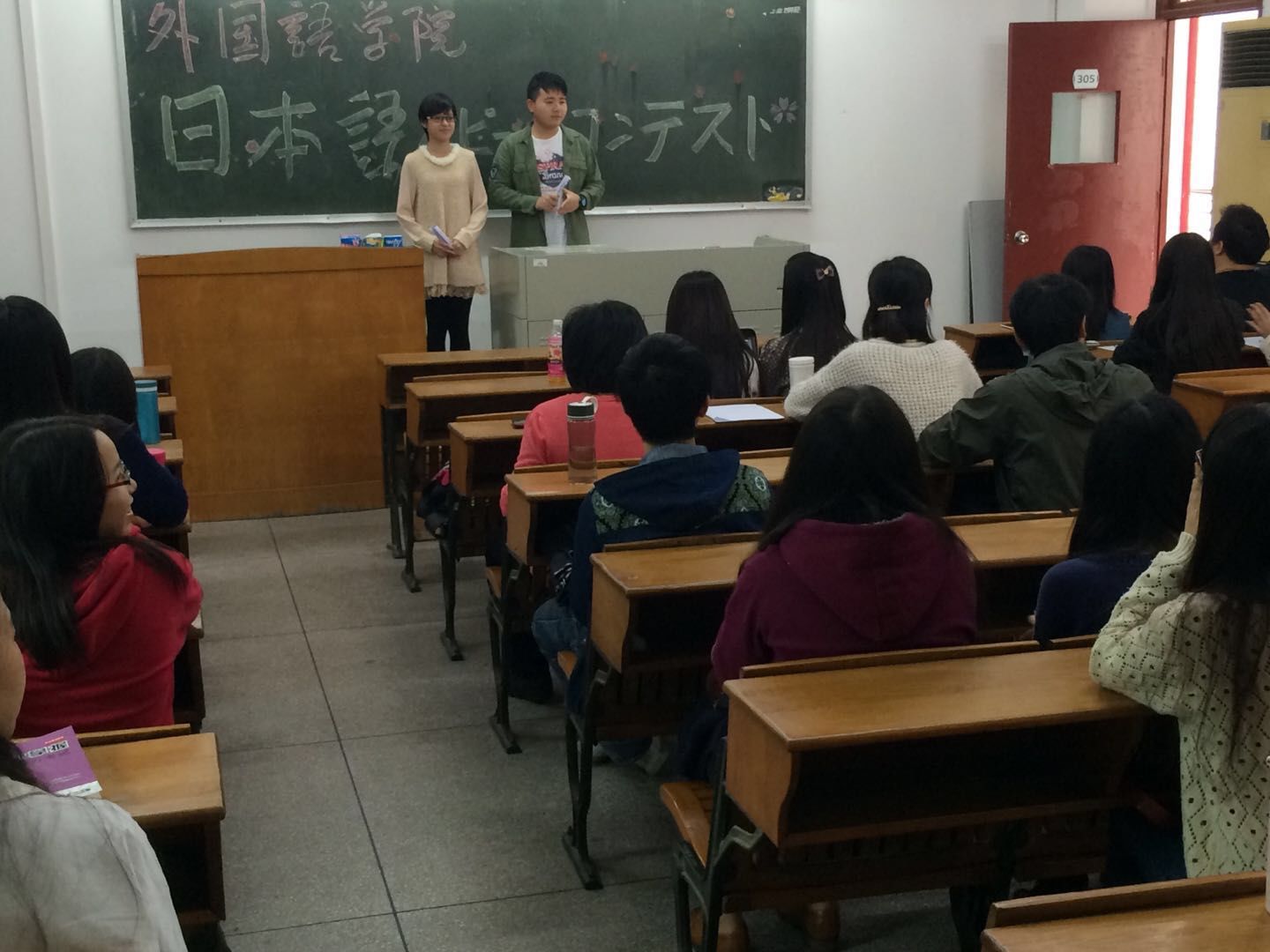 为了检验教学效果,提高学生日语应用能力,日语系在日语文化周举办一系列丰富多彩的实践活动,其中第一项活动——日语演讲比赛于11月18日举行。